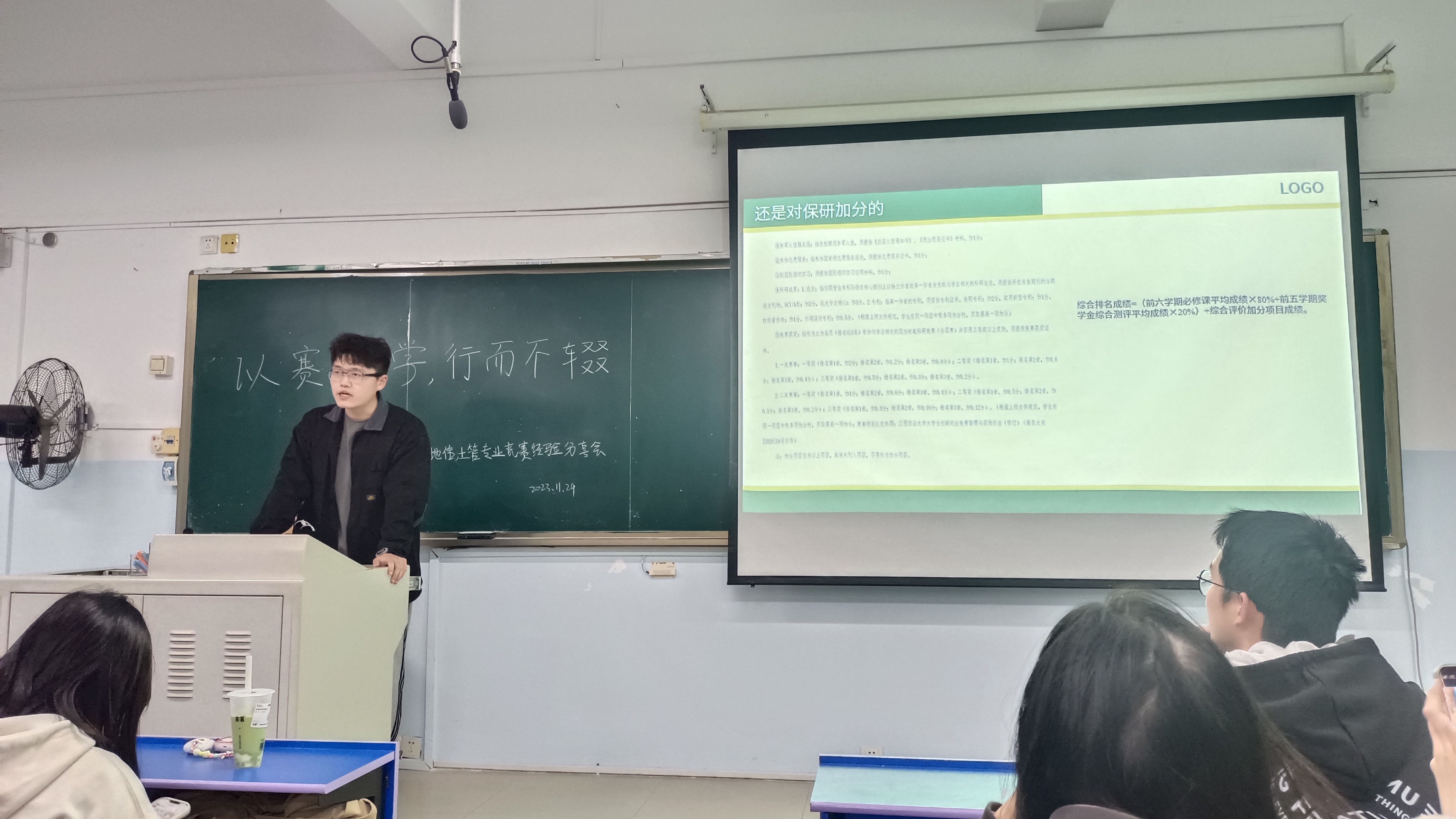地信2001邵伊雯对地信专业的易智瑞杯中国大学生GIS软件开发以及一些国家级的比赛做了一个完整的介绍以及就比赛前准备和比赛中过程提出了一些建议,例如赛前可以先确定比赛主题,之后确定相应的思路,再做一些数据准备,在比赛时做好数据预处理,运用合理的方法以及编程代码或3D模型;地信2101毕晨铭则对比赛的整个过程阶段分享了自己的经验,以及比赛对于综测保研的加分的重要性;土管2101徐婧仪明确参与竞赛的目的,并分享了自己参加土地国情调查大赛时的亲身经历;土管2102黄文婷则介绍熟练的掌握办公软件,拥有强大的心理承受能力,随机应变的能力和组织协调能力等对比赛的重要性。土管2102林璟杰就各类学科比赛时间安排做了介绍,也分享了自己的参赛感悟。