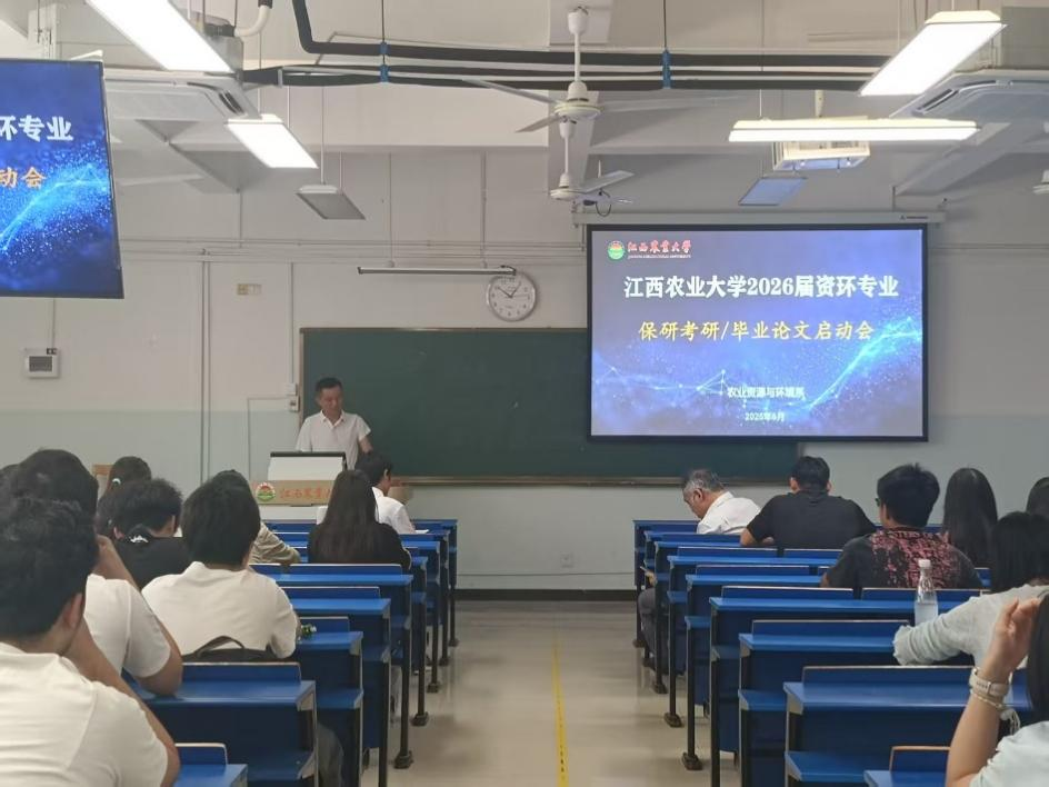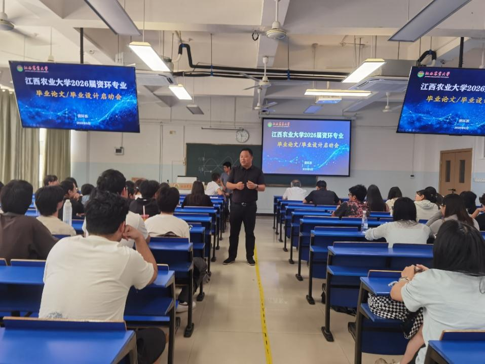 为有序推进农业资源与环境专业2022级本科生毕业论文及推免保研、考研工作,农业资源与环境系于2025年6月6日上午在第五教学楼107室组织召开专题动员部署会。会议由系副主任赵尊康主持,副院长张嵚教授出席会议并作指导讲话,教研室副主任荣勤雷、秦张杰及导师代表、惟义资环2201班、资环2201班等80余人参会。
