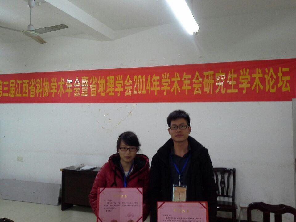 本次地理学年会的主题是:“地理学创新与江西区域可持续发展”。会上,陈文波教授作了题为“基于两种方法结果差异的市域土地整治功能分区研究”的大会特邀报告。在本次年会举办的研究生论坛上,我校2012级土壤学专业研究生林世滔和2013级土地资源管理专业研究生刘恋分别作了学术报告。此外,研究生论坛组委会还组织专家对参会研究生所提交的论文进行了评审,共评选出优秀论文15篇。林世滔同学撰写的《人类活动对鄱阳湖生态经济区生物多样性的影响研究》和刘恋同学撰写的《森林景观对区域生物多样性的影响》均获评本届研究生论坛优秀论文。