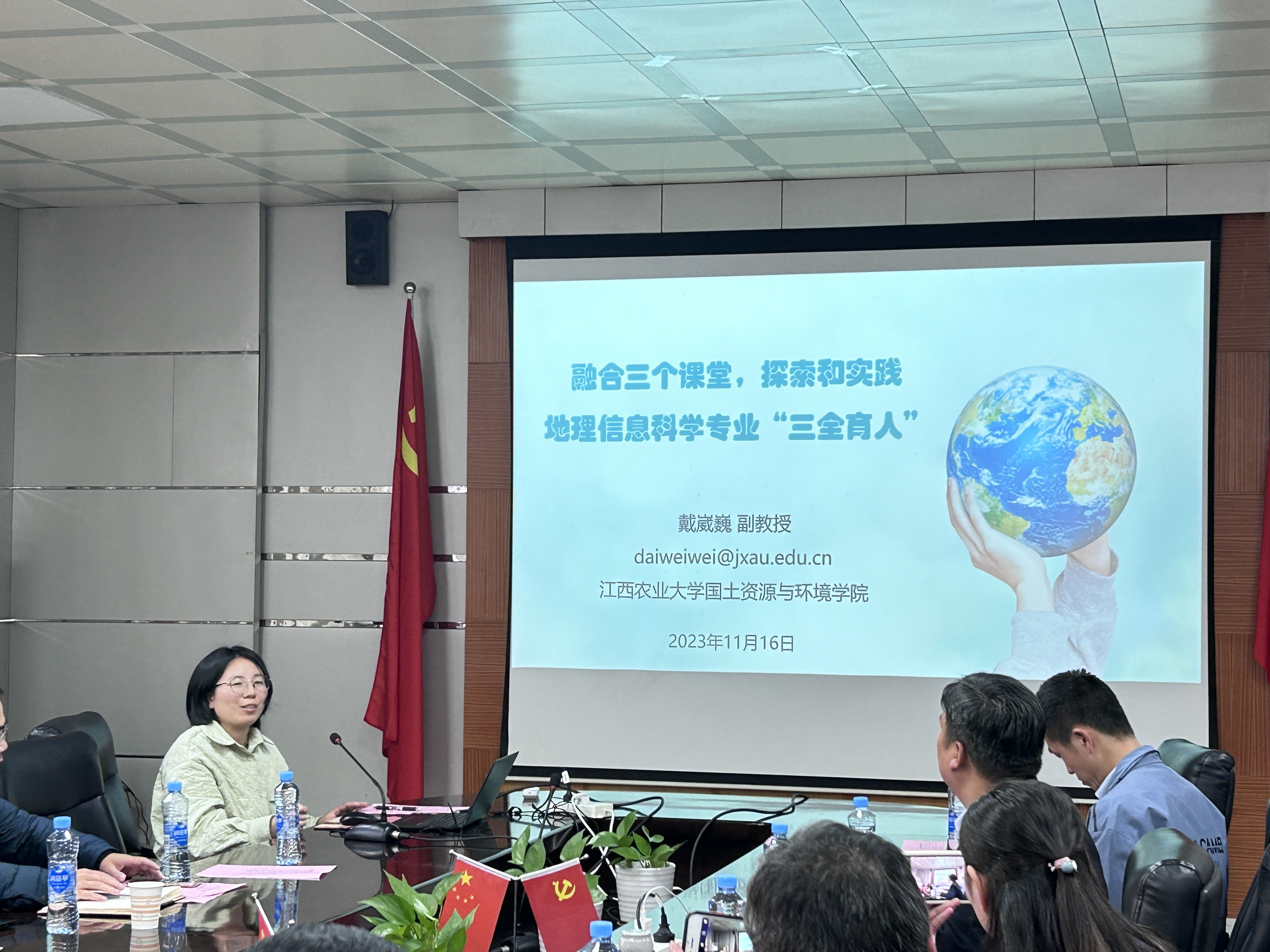 2023年11月16日,由江西省地理学会主办,江西师范大学地理与环境学院、鄱阳湖湿地与流域研究教育部重点实验室联合承办的第五届江西“地理周”高校教师教学研究论坛在江西师范大学地理与环境学院举行。本次论坛旨在加强江西省地理学人才培养单位之间在一流专业建设、课程资源开发、教学改革与创新、教学成果奖培育、地理实践教学师范专业认证等方面的交流,促进教学资源共享、创新思想碰撞,提升地理学人才培养质量。院教师代表土地资源管理系戴崴巍副教授和朱泰峰博士、聂欣然博士参加了本次论坛。