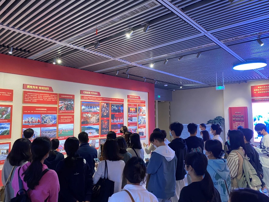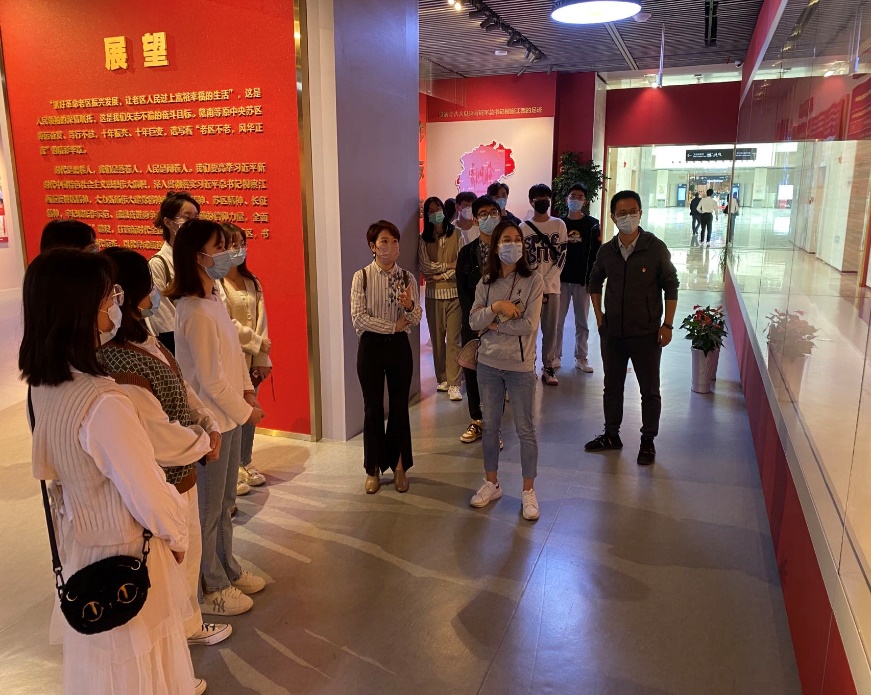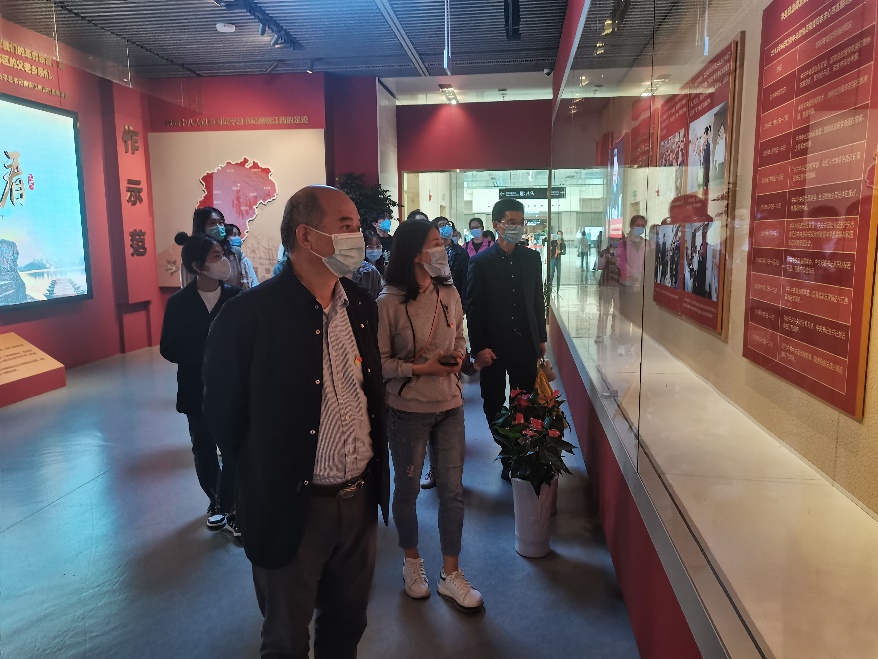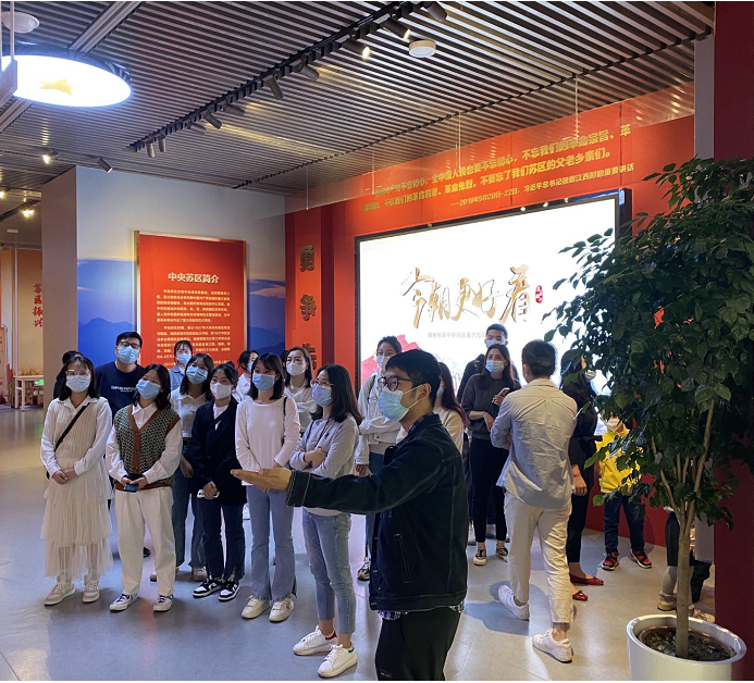 集体参观后马慧琴书记组织全体学生党员、入党积极分子通过对不同模块进行现场轮流讲解、分享参观感悟的方式进行学习。周丙娟老师结合土管专业在苏区开展的工作和调研,对相关土地政策进行了分享,对成果展的一些细节进行了补充讲解。