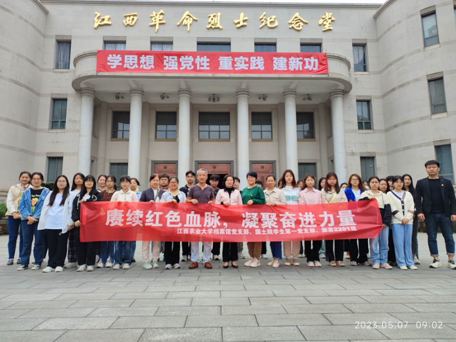 为深入推进学习贯彻习近平新时代中国特色社会主义思想主题教育,国土环境与资源学院本科生第一党支部应档案馆党支部邀请。5月7日上午,国土院本科生第一党支部、旅游2201班入党积极分子与档案馆党支部老师共同前往江西革命烈士纪念堂联合开展“赓续红色血脉,凝聚奋进力量”主题党日活动。