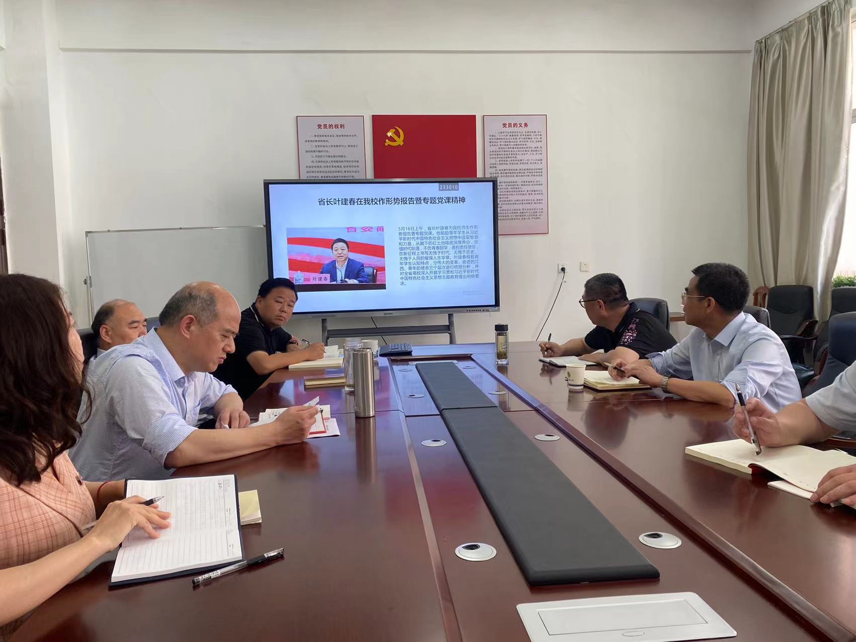 专题学习开始前首先进行第一议题的学习,党委书记李保同带领大家习近平总书记关于正确政绩观的指示批示精神,党委副书记马慧琴传达学习省长叶建春在我校作形势报告暨专题党课精神,传达5月15日巡回指导组会议精神。