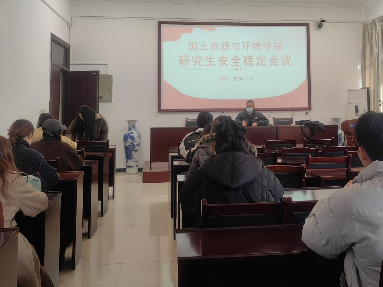 2024年1月11日下午,学院在院办209召开研究生安全稳定会议。本次会议由张勇老师主持发言。会议传达学习校园安全稳定工作会议精神,目的是加强研究生的安全意识。
