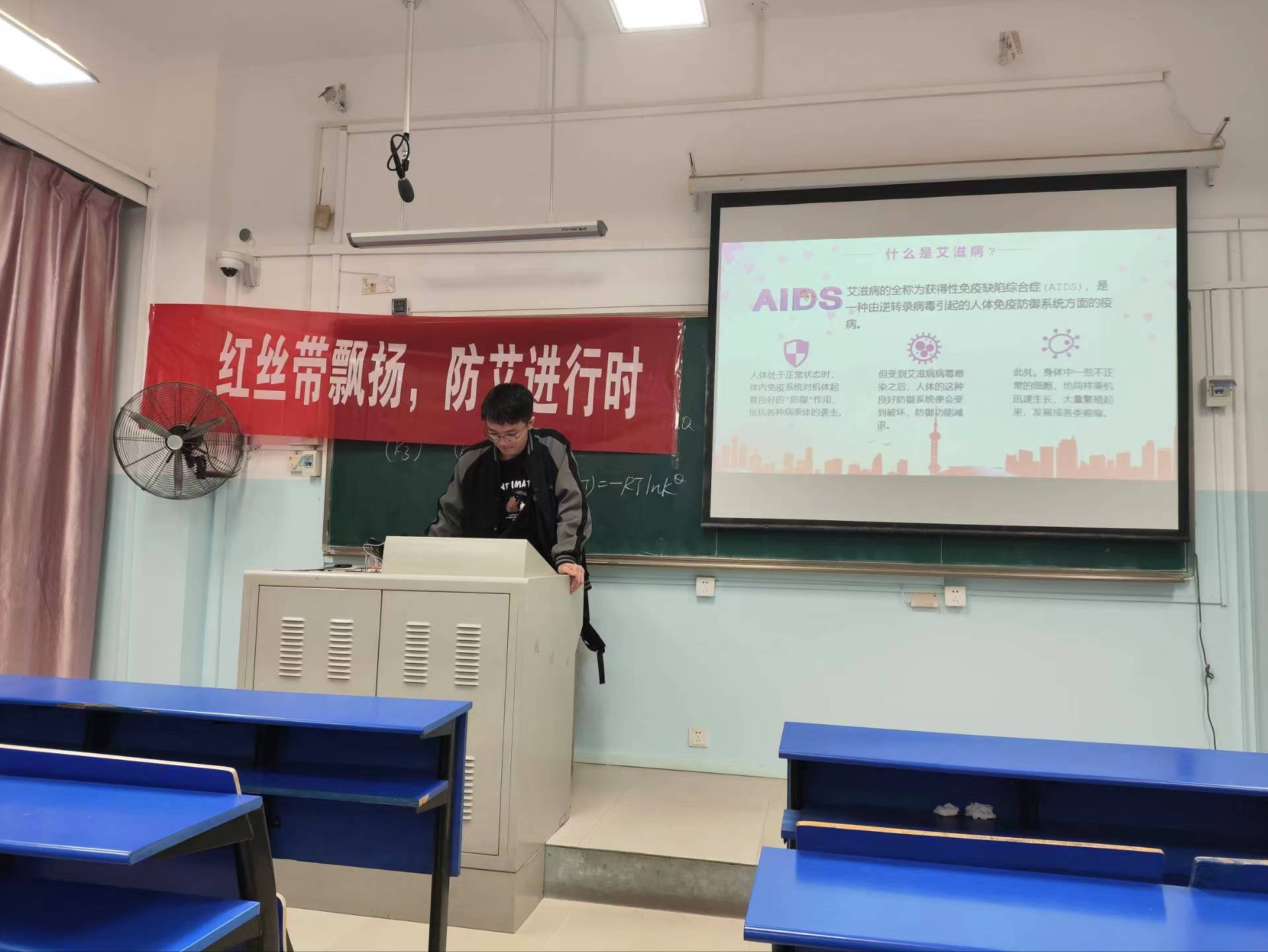 下午,社团成员走进寝室、走进教室开展防艾知识宣传。活动中,社团成员通过发放防艾宣传册、PPT展示等方式,就艾滋病的流行现状、传播途径、怎样预防、感染艾滋病高危风险因素等相关健康知识进行详细讲解,呼吁大家争做防艾工作的宣传员,向身边的老师同学积极宣传预防艾滋病知识。