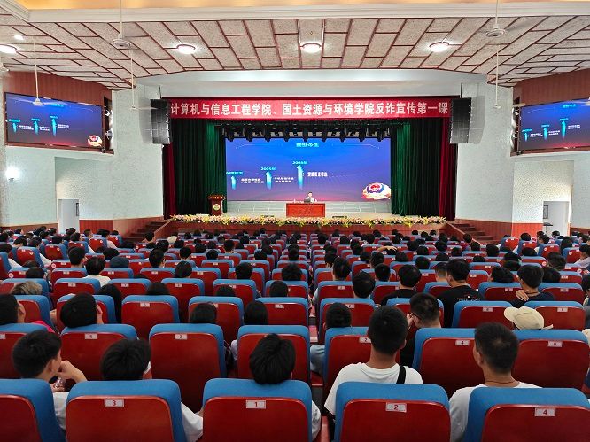 开展“安全教育”,把牢校园安全红线。为深化防范电信网络诈骗宣传教育工作,从源头上筑牢新生反诈意识,构建平安和谐校园环境,9月11日,学院开展新生反诈第一课,特邀请南昌市公安局反诈讲师团徐加明警官给2023级新生讲解反诈知识。通过以案说法的方式向在场同学们展现了常见的诈骗套路、手段以及如何应对的措施、方法,引导同学们做到“不听、不信、不转账”,筑牢反诈“防火墙”,守好自身“钱袋子”。