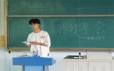 严明“校纪校规”,促进新生成长成才。为帮助新生加强对校纪校规的了解,尽快融入大学生活,9月11日晚学院开展《学生手册》学习宣讲活动,发挥朋辈力量,组建“学生手册宣讲团”,走进新生班级重点对学生管理规定、考核与成绩、学生违纪处分管理规定、学生体质健康标准、第二课堂学分认定标准以及综测评定等方面进行详细的分享介绍。引导新生在今后的学习生活中遵守各项校规校纪,争做新时代有新思想新作为的新青年。