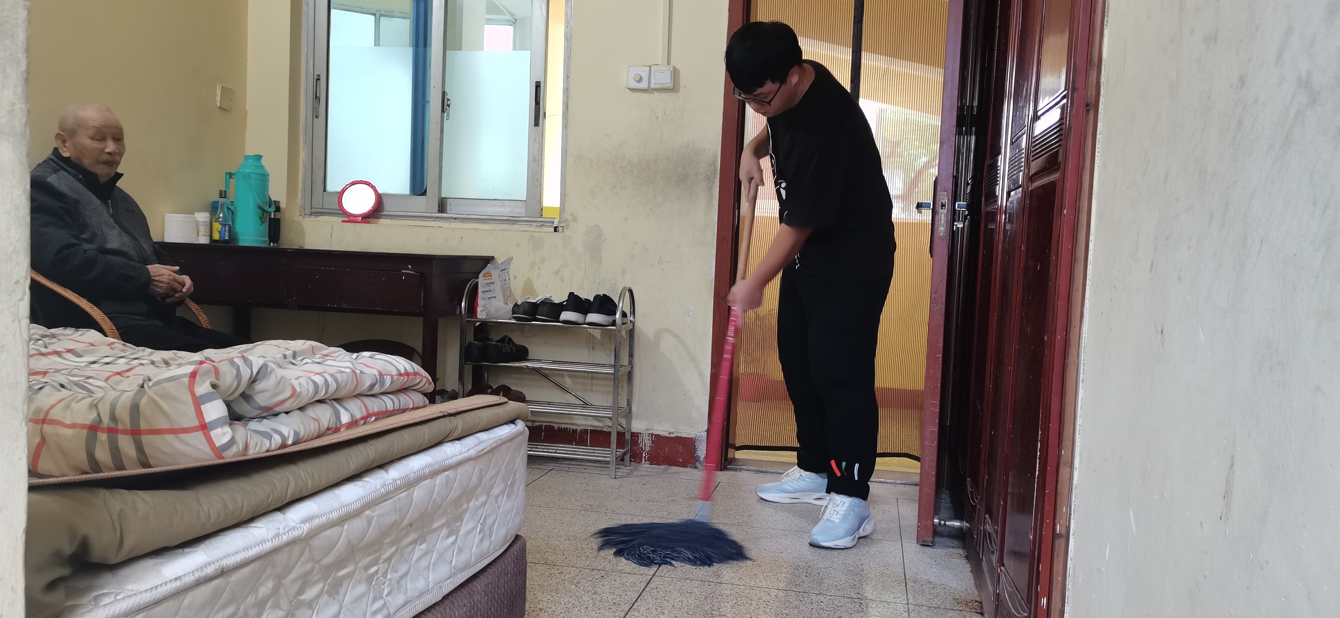 10月5日上午,怀着对革命先辈的敬仰,对过去那段光辉岁月的缅怀,22级研农业资源与环境刘先琨同学走进了吉安县光荣院,去看望光荣院的英雄老军人,为老人整理床铺,打扫卫生,聆听老人的故事。
