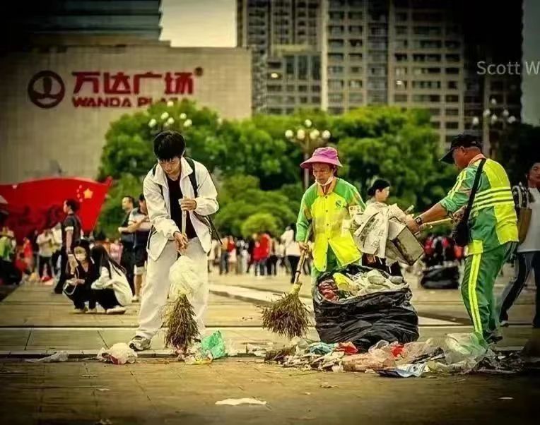 爱国从来都不是一句口号,南昌八一广场升旗仪式过后,广场上留下大量废垃圾,有那么一位学生,主动帮助清洁阿姨们打扫广场卫生,践行时代担当,用实际行动为祖国74华诞献礼。他的事迹在抖音平台广泛传播,他就是——农业水利工程系大一新生张城韬!