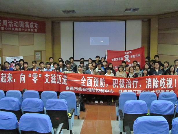 本报讯(谢良梅)11月26日,由南昌市疾病控制中心主办,我校明星社团爱心社及南昌十大高校公益社团承办的“青春红丝带、健康高校行校”校园防艾周开幕式在南区门口成功举行,本次活动旨在更好的宣传艾滋病有关知识,号召更多的大学生采用多种方式加入到宣传艾滋病相关知识、关爱艾滋感染者的行列中来,从而达到消除对艾滋病感染者的歧视。同时响应今年艾滋病主题“零新发感染、零歧视、零死亡”,参加本次开幕式的嘉宾有:南昌市疾控中心艾滋病性病防治科路亮老师,江西爱温暖家园互动组创始人刘九龙老师以及南昌十大高校公益社团代表。开幕式由爱心社杜梦瑛、廖金耀主持。