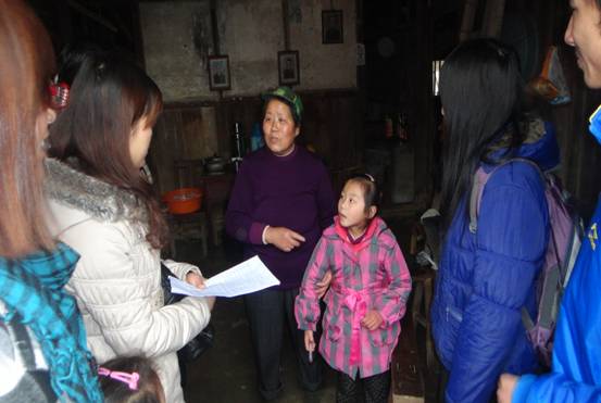 家访活动第一家的是一个叫孙恒瑞的小朋友,他是一个五年级学生,家里还有一个姐姐在读高中,当我们去的时候,他在家看店并一边写作业,十分听话。校长及辅导员勉励他要好好学习并更上一层楼。并给他赠送了一份爱心社的礼品——手套、文具盒和铅笔。随后,一行人员一共走访八位农民工子女家庭,他们或是单亲,或是和爷爷奶奶生活,或是家里兄弟姐妹比较多的,生活都相对贫困,但他们的学习成绩都比较突出。枫景小学校长、老师与社团联合会负责人等人都对小朋友表达了关怀,并号召更多人去关注这些儿童。回返途中,枫景小学校长、老师与社团联合会负责人都对大学生关爱农民工子女志愿帮扶活动提出了一些建议,并希望爱心社队员能够尽最大的能力去帮助、关爱留守儿童。