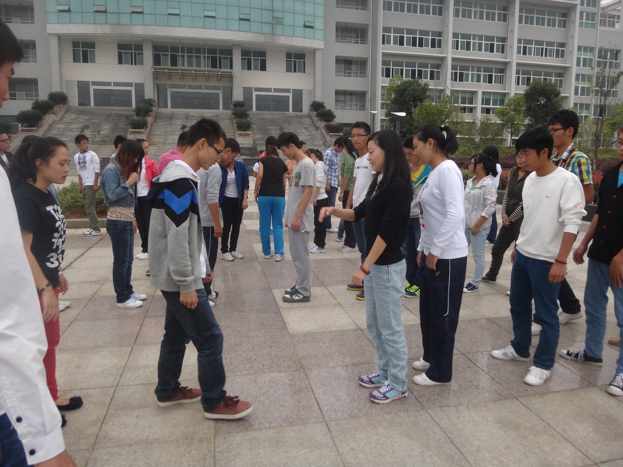 本报讯(李晶晶)10月14日,由我院团委学生会主办的首届团学干事素质拓展活动在五教广场顺利开展,并有幸邀请到我院绿源协会的相关工作人员作为培训师。团学委员及副部则在场外与干事们分享整个活动过程。