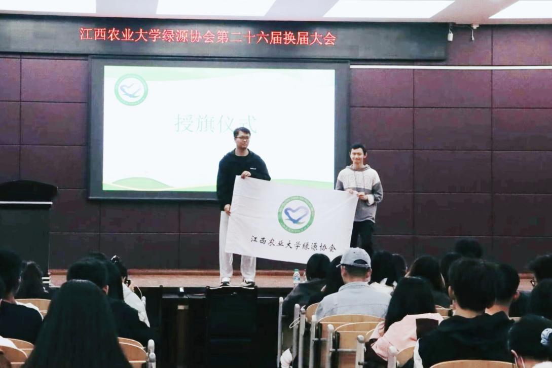 接着,院团委副书记陈蕾老师上台为新一届主管团队颁发聘书。院团委副书记赵晨刚老师为新一届理事代表进行了授旗。