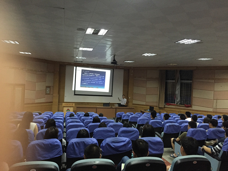 在讲座中,徐凯经理围绕当前国家社会发展面临机遇与挑战、企业人才选聘要求、房地产行业发展新动态、大学生择业时注意细节等方面入手,结合自身大学期间的成才经历、工作后的成长过程,他认为当前大学生有五条职业发展路径,但是每个人都需要学会“用管理学方法来择业”,只有这样才能不迷茫、不徘徊、不人云亦云。他为大学生职业规划提出建议:一是要自我分析,二是要建立目标,三是要做好计划,四是要树立信心。