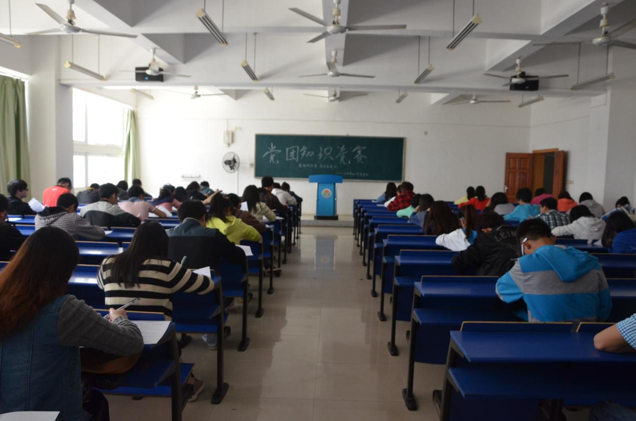此次党团知识竞赛以“爱国悠悠情,党团在我心”为主题面向全校学生开展。同学们积极响应院党委、团委号召,热情参与。在初赛笔试过程中,参赛的同学都认真思考,细心作答,整个赛场秩序井然,氛围良好。