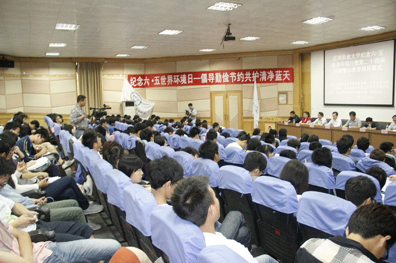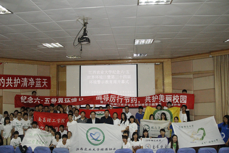 2013年6月2日,在第42个世界环境日即将来临之际。在我校科技大楼报告厅隆重举行“‘倡导厉行节约,共护清净蓝天’江西农业大学纪念‘六.五’世界环境日暨第二十四届环境警示教育周”活动启动仪式。校长助理许斌华,江西省环保厅宣教中心主任李旭亮,校学工部部长左辉群,校党委宣传部副部长胡永升,校团委副书记贺媚,国土学院资环教研室张嵚以及南昌兄弟高校环保社团代表和绿源协会环保志愿者等200余人出席启动仪式,活动由国土学院党委副书记黄新志主持。