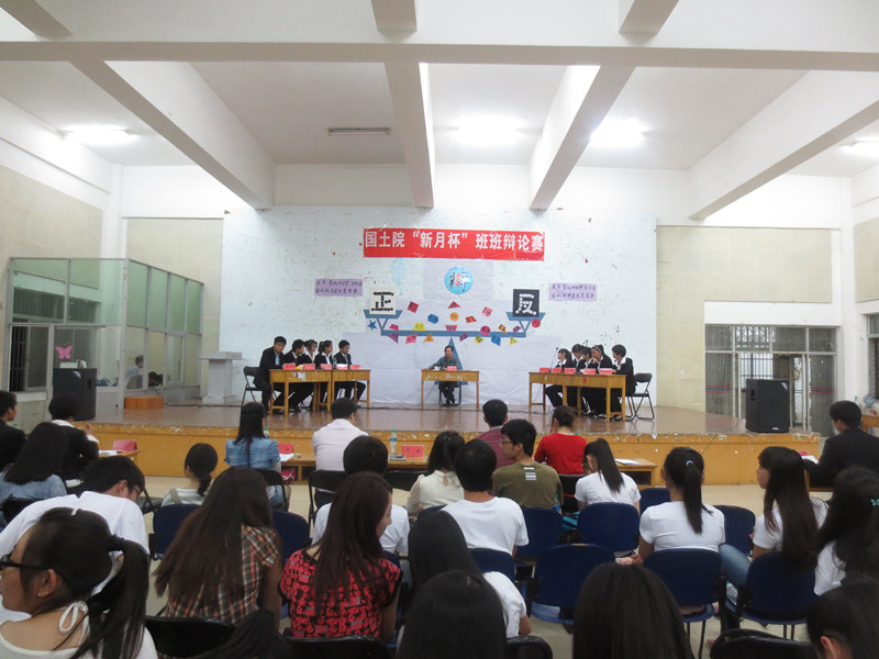 经过初赛、复赛、半决赛等近一个月的层层选拔,我院第六届“新月杯”班班辩论赛决赛于5月13日晚7点在大学生活动中心501激情打响。国土学院党委副书记黄新志老师、马克思主义学院罗忆芳老师、校学生会宣传部部长戴建杰、人文院宣传部部长李颖婕、501演讲协会演辩部部长黄梦薇担任本次比赛的评委。