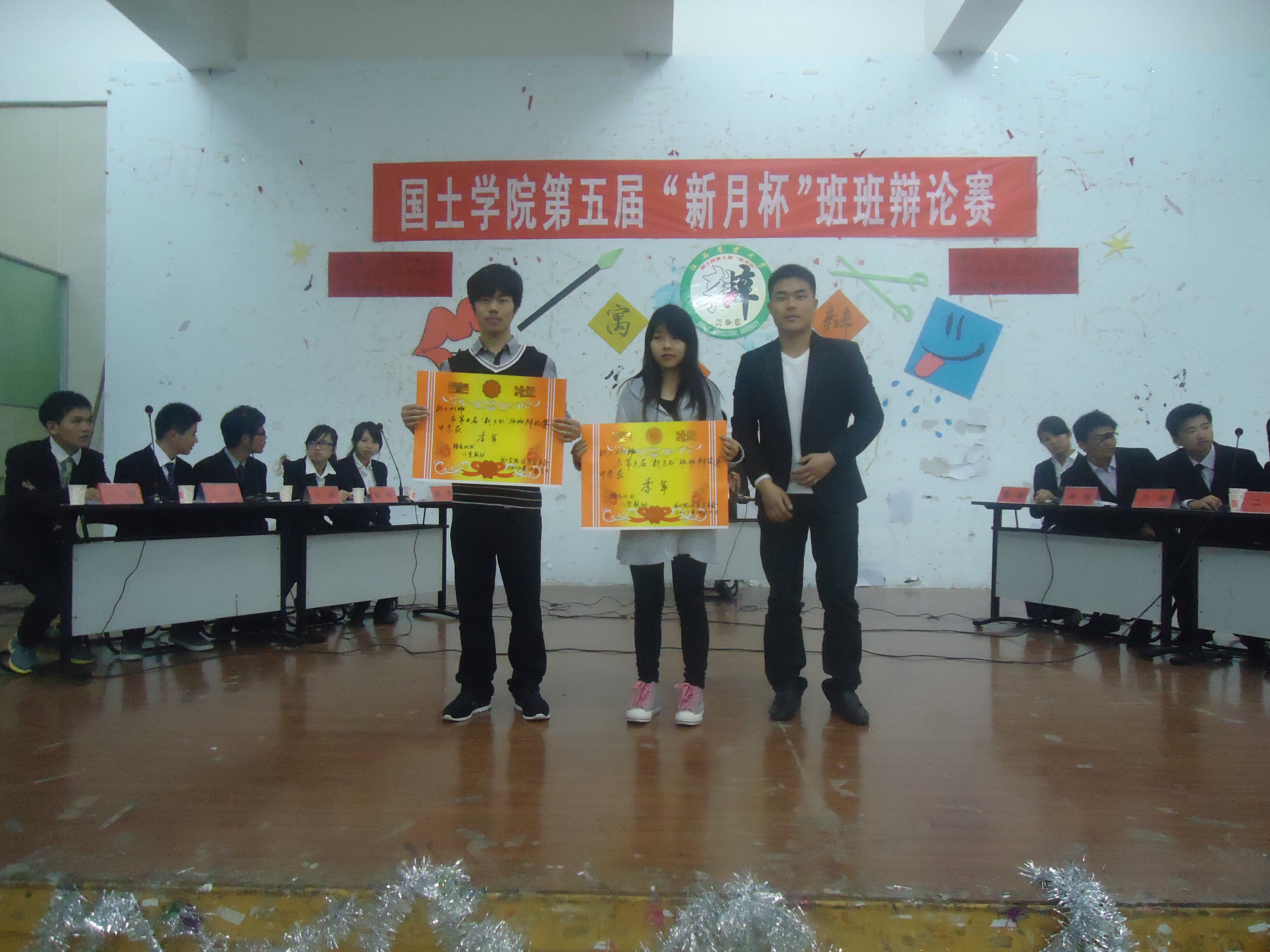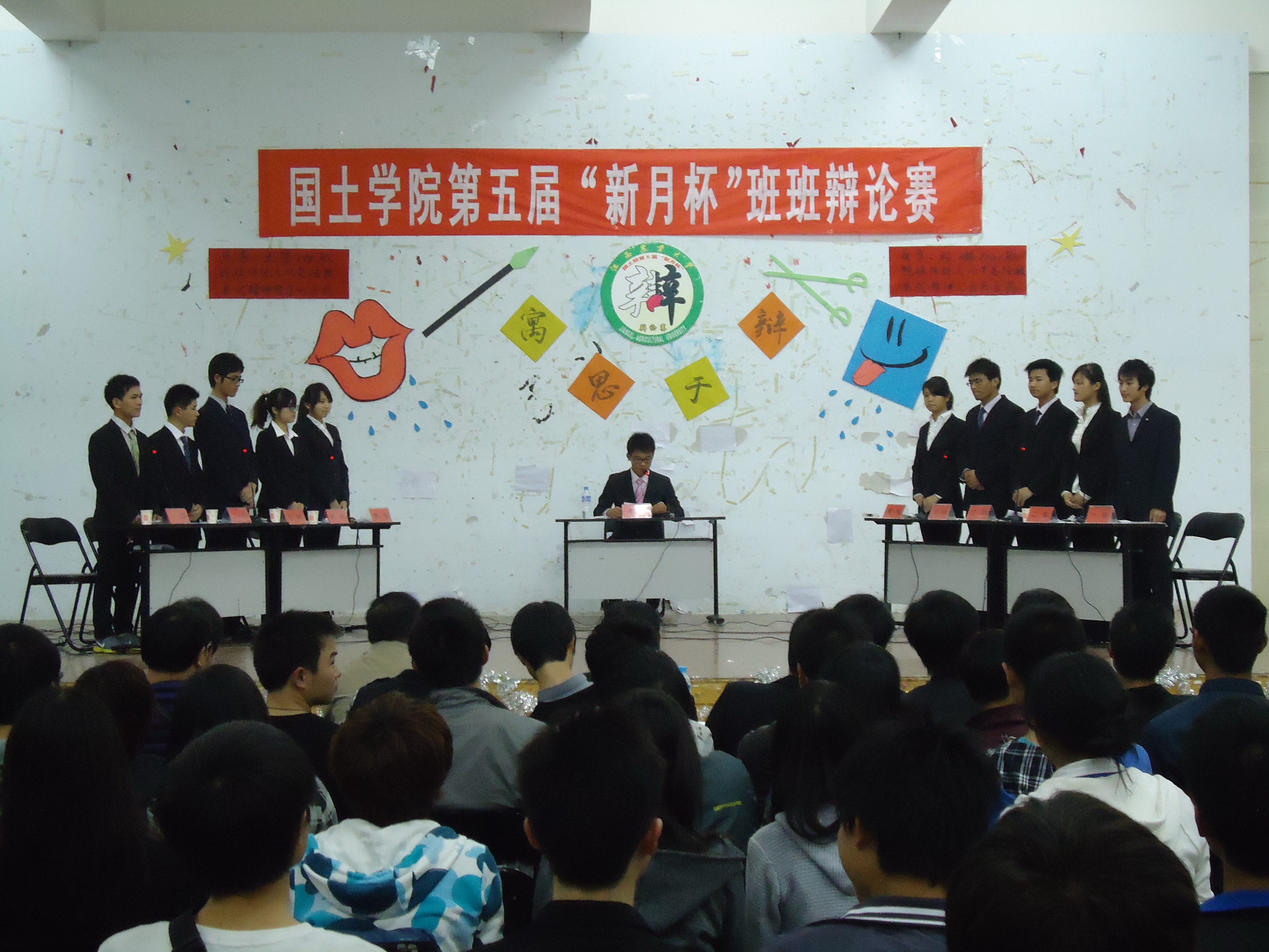 本报讯(李晶晶)4月6日晚,我院第五届“新月杯”班班辩论赛决赛在大学生活动中心501顺利举行。本次比赛的评委有马克思主义学院罗忆芳老师、我院党委副书记黄新志老师、501演讲协会演辩部部长杨一民、校宣传部部长孙世达、人文院辩论队队长张家宁。同时莅临比赛现场的嘉宾还有有我院学工办谭会乐老师、我院罗志军老师、我院沈尧老师、校学生会及各院系学生会主席以及宣传部部长。