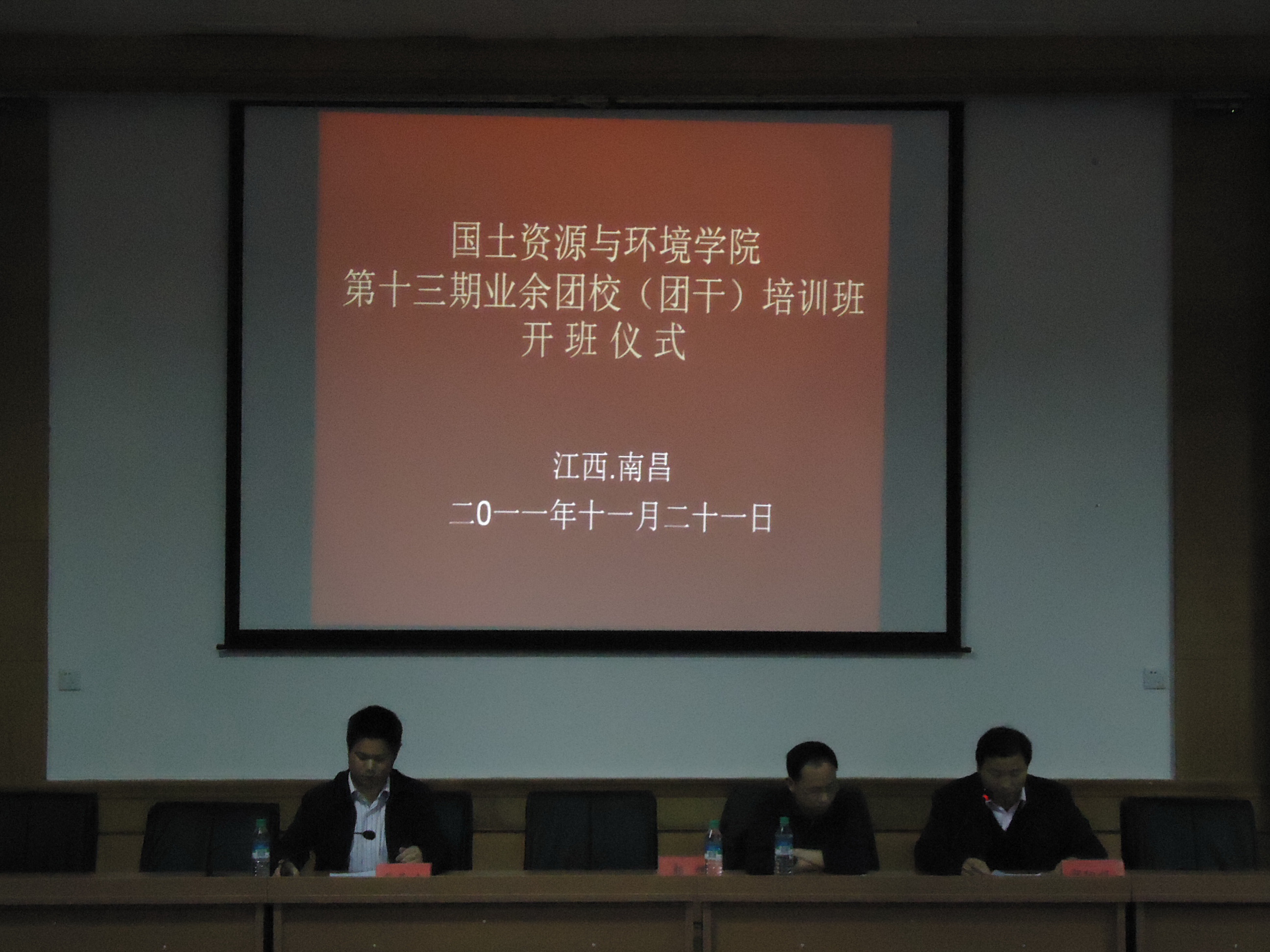莅临开班仪式的嘉宾有我院党委书记郭旭教授,党委副书记蔡海生教授,团委书记郭细根老师。参加本次团干培训的学生包括我院团委学生会副部长(已参加第十二期团干培训班的同学除外)及干事,社团主要干部,2011级各班班委,以及其他各班新当选的班长、团支书。本期开班仪式由郭细根老师主持。