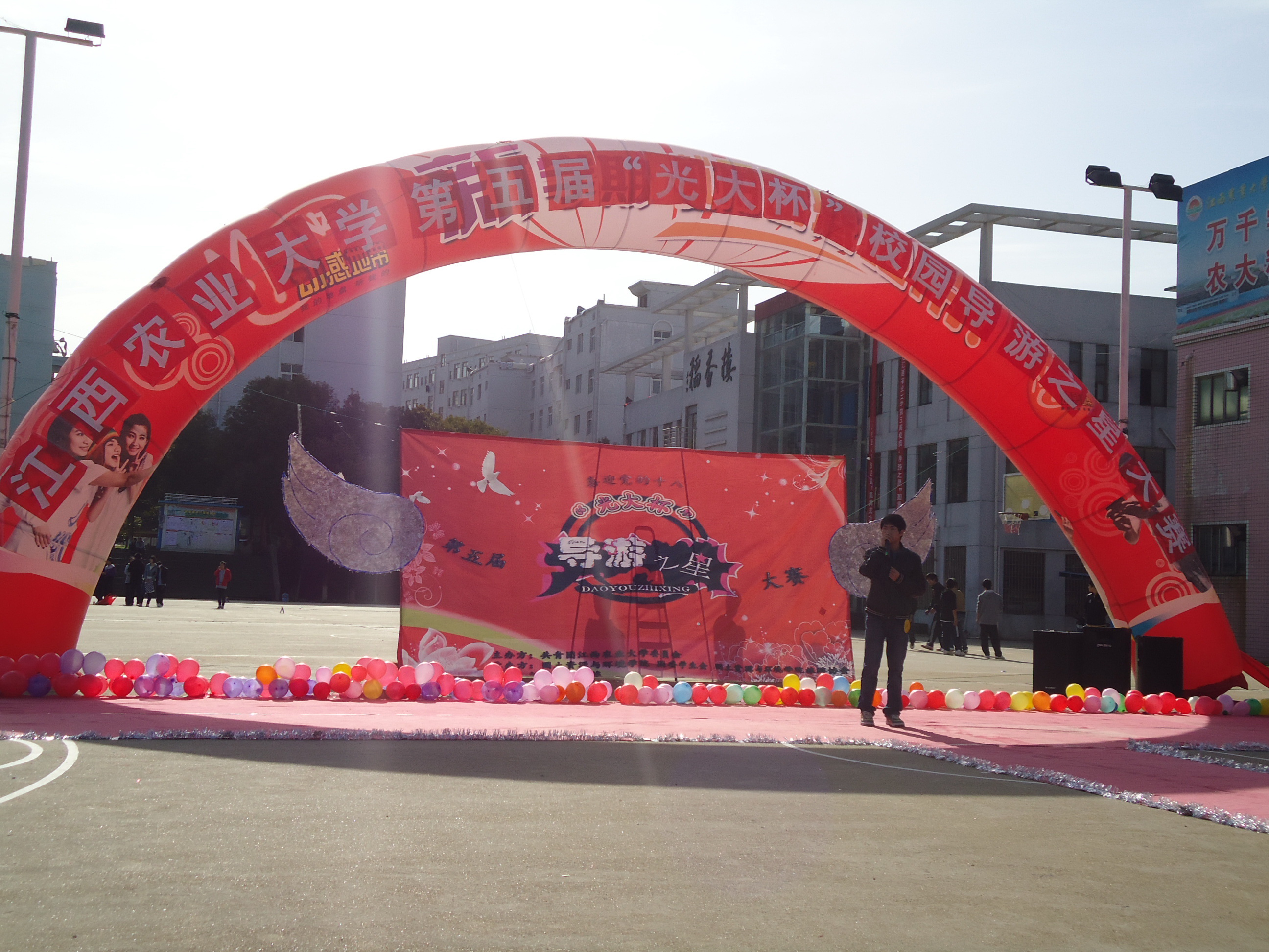 早上八点,导游之星初赛正式开始。南区篮球场上架起彩虹桥,来自各院的选手在红地毯上竞相展示才艺,或歌或舞或景点解说,以及朗诵、小品、相声等一一精彩上演。选手们风采各异,展示出我校学子的勃勃生机与勇于挑战自我的精神风貌。现场气氛十分热烈,吸引了众多观众驻足关看,掌声经久不息!晚上六点,导游之星初赛全部结束,比赛进行了九个多小时,共有包括商学院在内一百余名选手参加了初赛的选拔。经过一天的激烈比拼,评委将根据选手们现场表现选出20名表现突出者进入复赛,复赛又将决出10名选手进入决赛。
