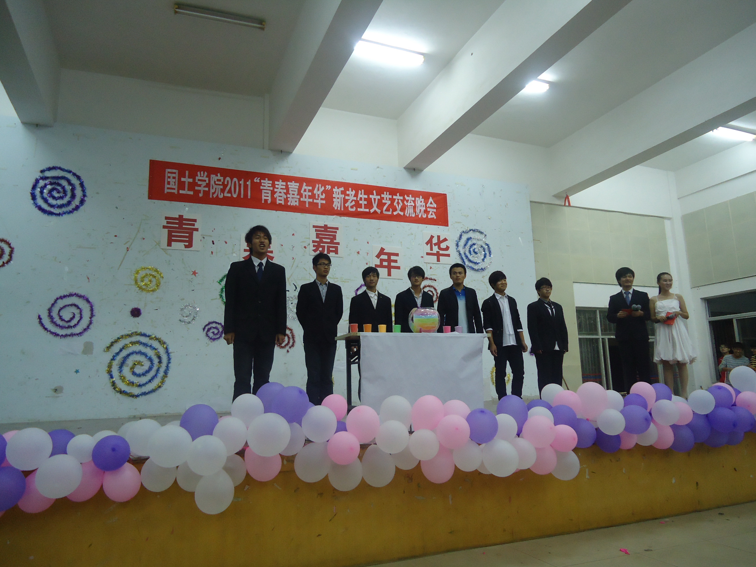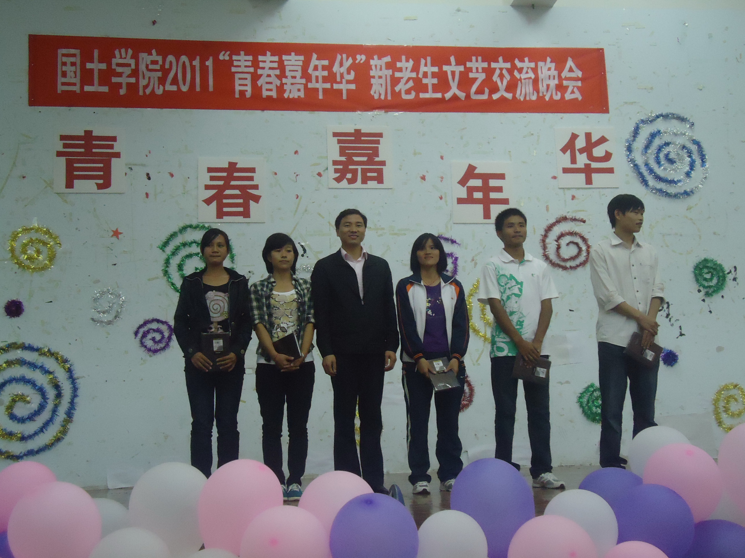 本报讯(曾加会 谷文学)11月5日晚7点,国土学院“青春嘉年华”新老生文艺交流晚会在大学生活动中心501顺利举行。国土学院党委副书记蔡海生教授、团委书记郭细根老师、学工办谭会乐老师和程建华老师,大一各班班主任和大一200余人观看了本次晚会。