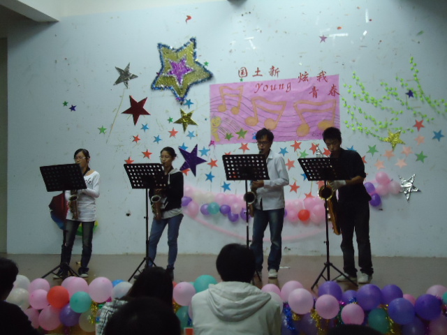 一段热辣的开场舞拉开了本次大赛的序幕。场下口号声,加油助威声不绝于耳,场上选手则卖力表演,尽情发挥。有优美感人的歌曲,静然的葫芦丝表演,有无声的哑剧也有慷慨激昂的诗朗诵和幽默的话剧,形式各异。尤其是来自土管101班的话剧表演,选手们以其幽默的说辞,形象的表演赢得了场下同学的阵阵掌声。在比赛的中间,还设置了一个游戏的环节,广大同学都积极参与了其中。而在比赛的最后,我校军乐团的成员最为特邀嘉宾为现场观众演奏了一起悠扬的萨克斯四重奏《爱尔兰组曲》。而最后的我校街舞社团的街舞表演更是把正常比赛的气氛推至最高。