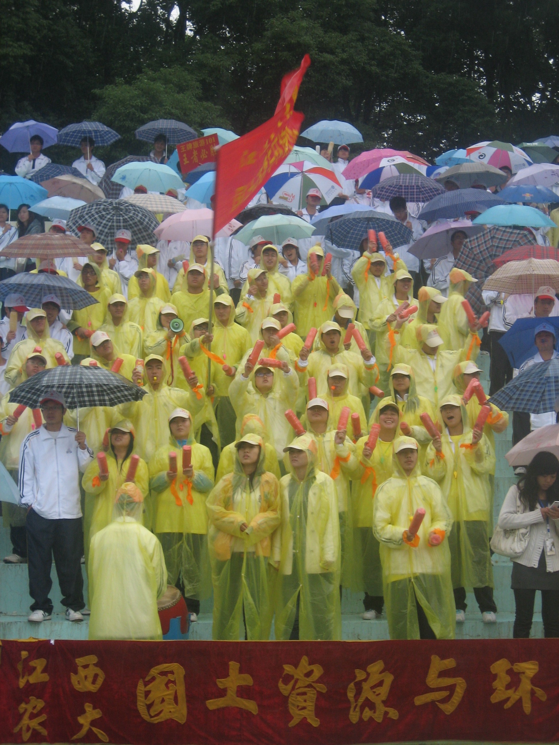 我院啦啦队队员们冒雨为运动员加油——激情澎湃