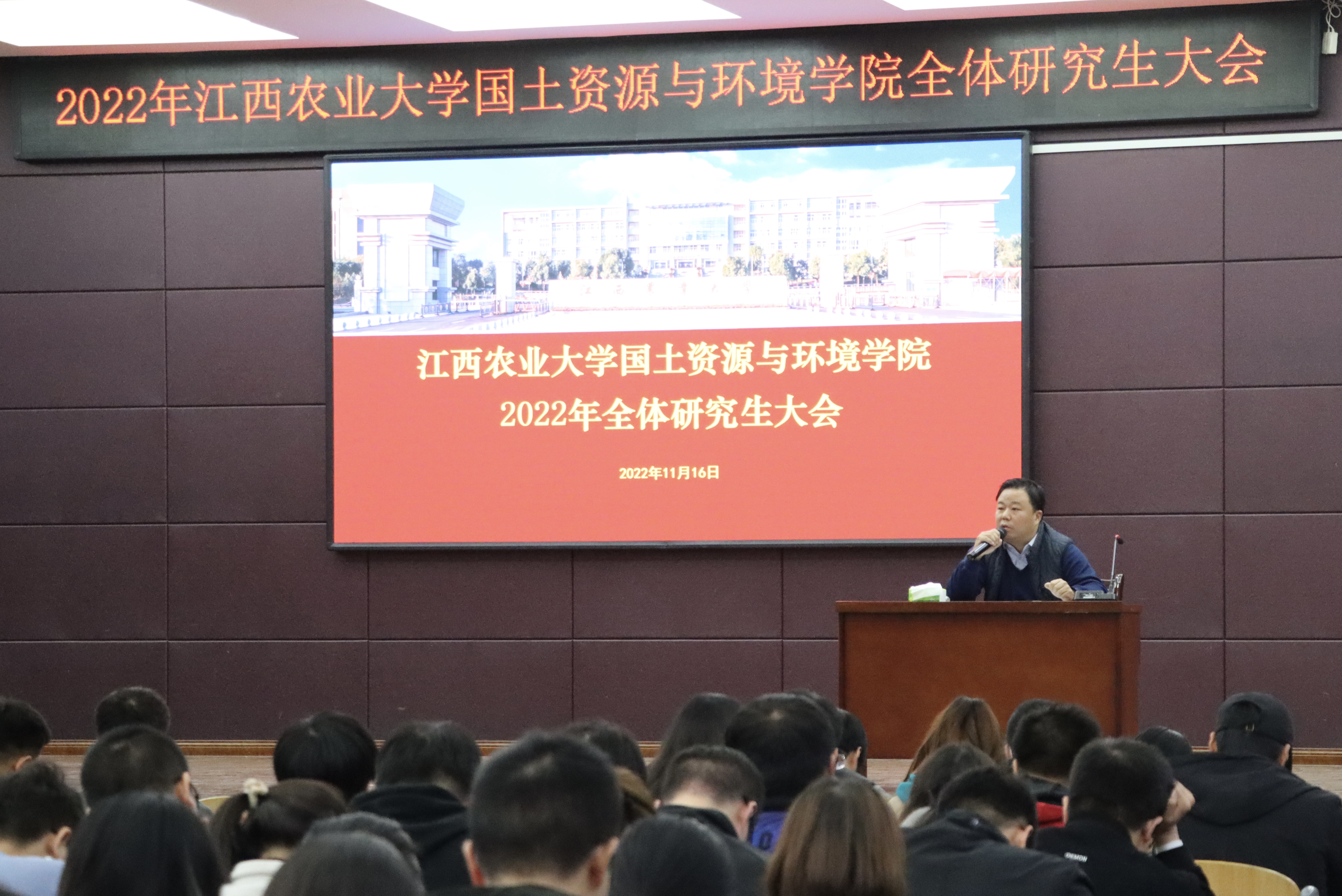 为进一步加强研究生思想政治教育、规范研究生日常管理及强化研究生法律意识,11月16日晚七点,国土资源与环境学院2022年全体研究生大会在大学生活动中心501顺利召开。出席本次会议的有院党委副书记马慧琴、副院长张嵚、学院分管研究生工作老师陈寅聪。国土院全体在校研究生共255人参加会议。