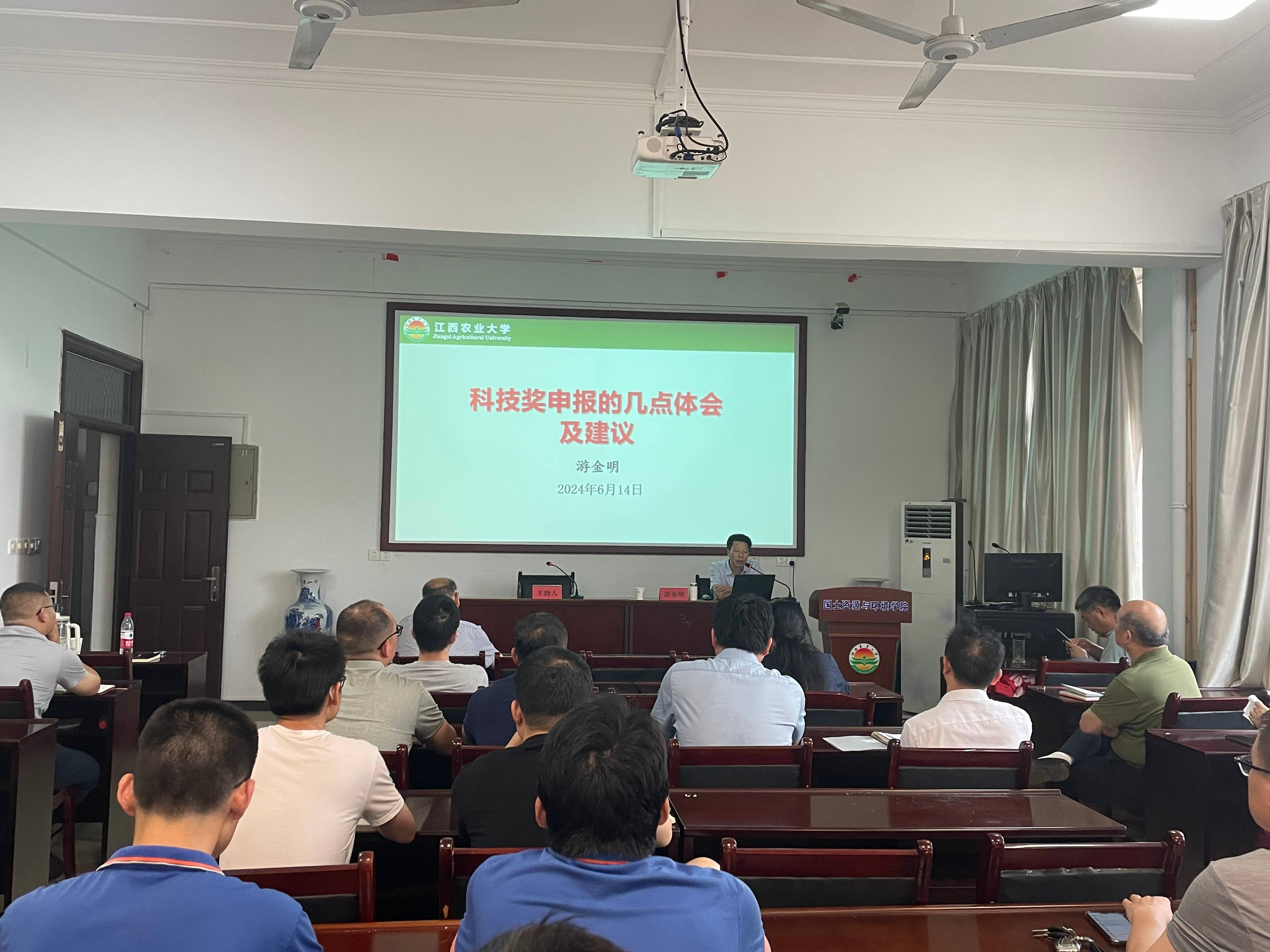 6月14日下午,副校长游金明教授应邀到学院开展科技成果奖申报专题培训。学院领导班子、各学科负责人和学术骨干等50余人参加培训。