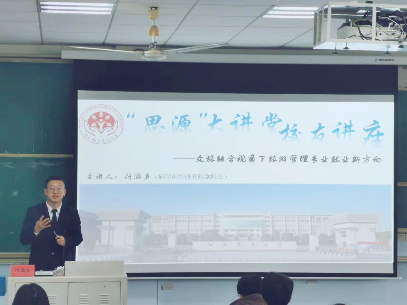 为进一步发挥优秀校友的榜样引领作用,引导激励广大学生做好学习规划和就业规划。11月12日下午,国土学院“思源”大讲堂校友讲座在五教202开讲。第二期邀请了2015级校友,江西省泰康旅业集团有限公司研学创新研究院副院长符满多,。本次活动由思源辅导员工作室承办,学院旅游管理专业教师、全体旅游管理专业学生共计150余人参加。