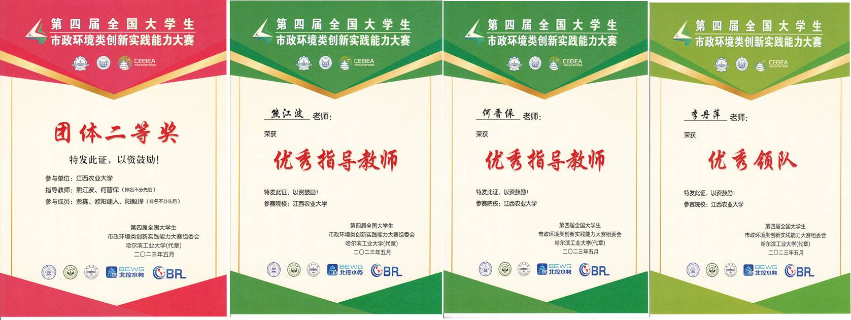 第四届“水务杯”大赛吸引全国147所高校参与,共1423支队伍参与比赛,4269名学生参与竞赛,1135位教师作为指导老师参与。国土院环境科学与工程专业组织了10支队伍,共计30名学生参与比赛。其中由熊江波和何晋保老师指导的贾鑫、欧阳建人、阳毅璋同学闯进决赛,荣获团体二等奖,实现了“水务杯”国赛获奖的历史性突破。同时,熊江波和何晋保老师荣获优秀指导老师,李丹萍老师获优秀领队荣誉。