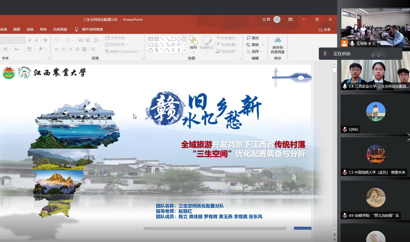 2021年10月17日,“博源”杯第三届全国大学生土地国情调查大赛决赛在中国矿业大学举办。大赛采取线上线下相结合的方式进行,并全程视频直播。我院学生陈立、龚佳丽、黄玉燕、罗有辉、李煜祺、张东风(指导老师:赵丽红)完成的参赛作品《赣水旧忆乡愁新——全域旅游开发背景下江西省传统村落“三生空间”优化配置调查与分析》荣获本次大赛二等奖。