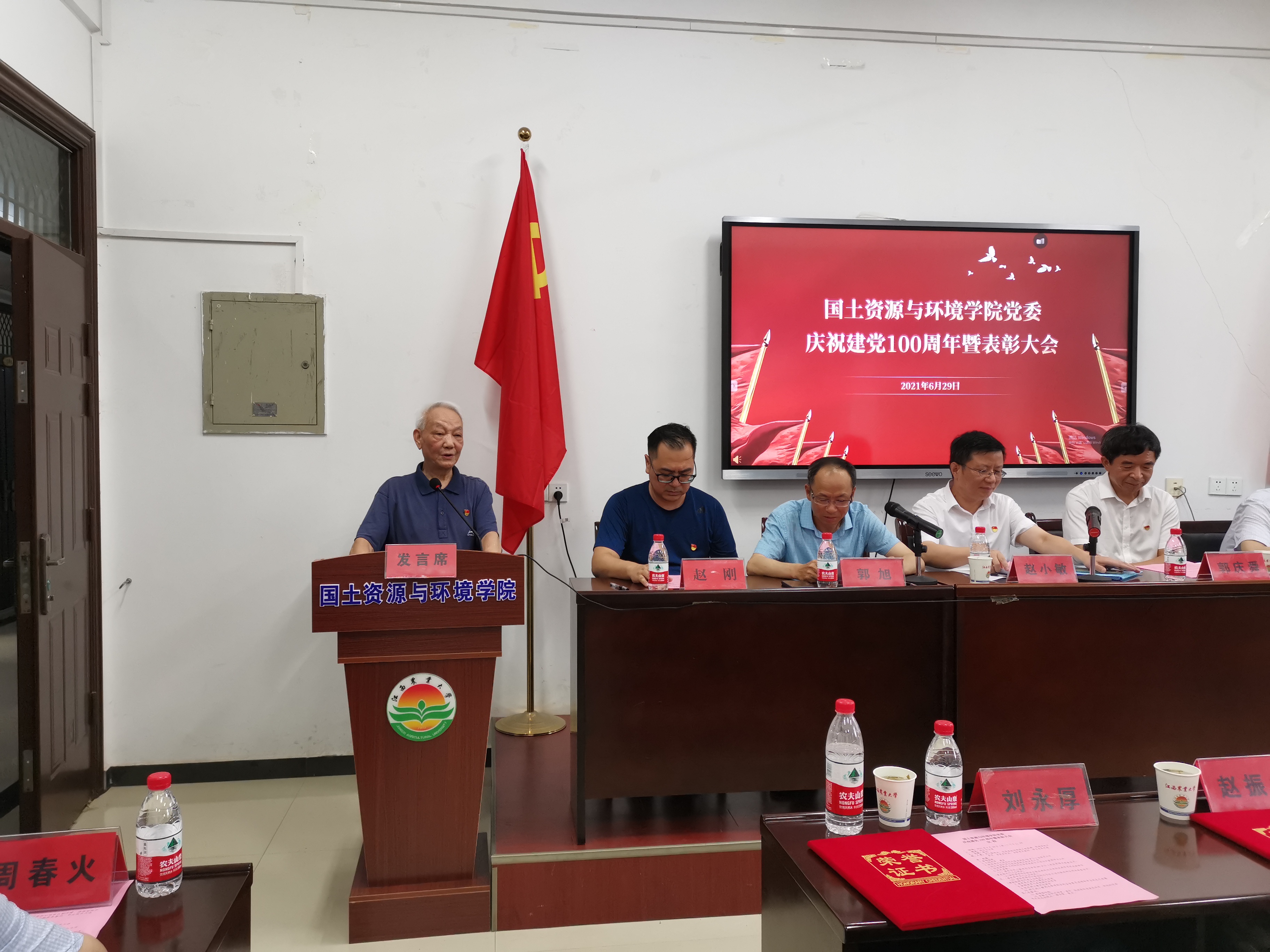 赵小敏在大会上发表了讲话,他回顾了建党100年来伟大祖国取得的巨大成就,总结了国土学院自成立以来在教学、科研、人才培养等各方面取得的优异成绩,并对全院党员提出三点希望:一是以优秀党员为榜样,自觉锤炼党性修养。榜样催人奋进,使命呼唤担当,要以优秀党员为标杆,深刻领悟党性的时代内涵,坚定理想信念,提高政治觉悟,争当先进、锐意进取,为推进伟大事业、实现伟大梦想贡献自己的智慧和力量。二是牢记立德树人初心,履行党员职责。要将立德树人融入到人才培养的全过程,做到思想道德教育、知识教育、实践教育各个环节相通相融。党员教师要发挥示范引领作用,以德育人,践行责任担当。三是发挥学院办学特色,担当强农兴农使命。要进一步整合学院优势资源和学科平台,将习近平总书记关于涉农高校的要求落实到教育教学、人才培养、科技创新等各个方面,着力培养一批知农爱农新型人才。