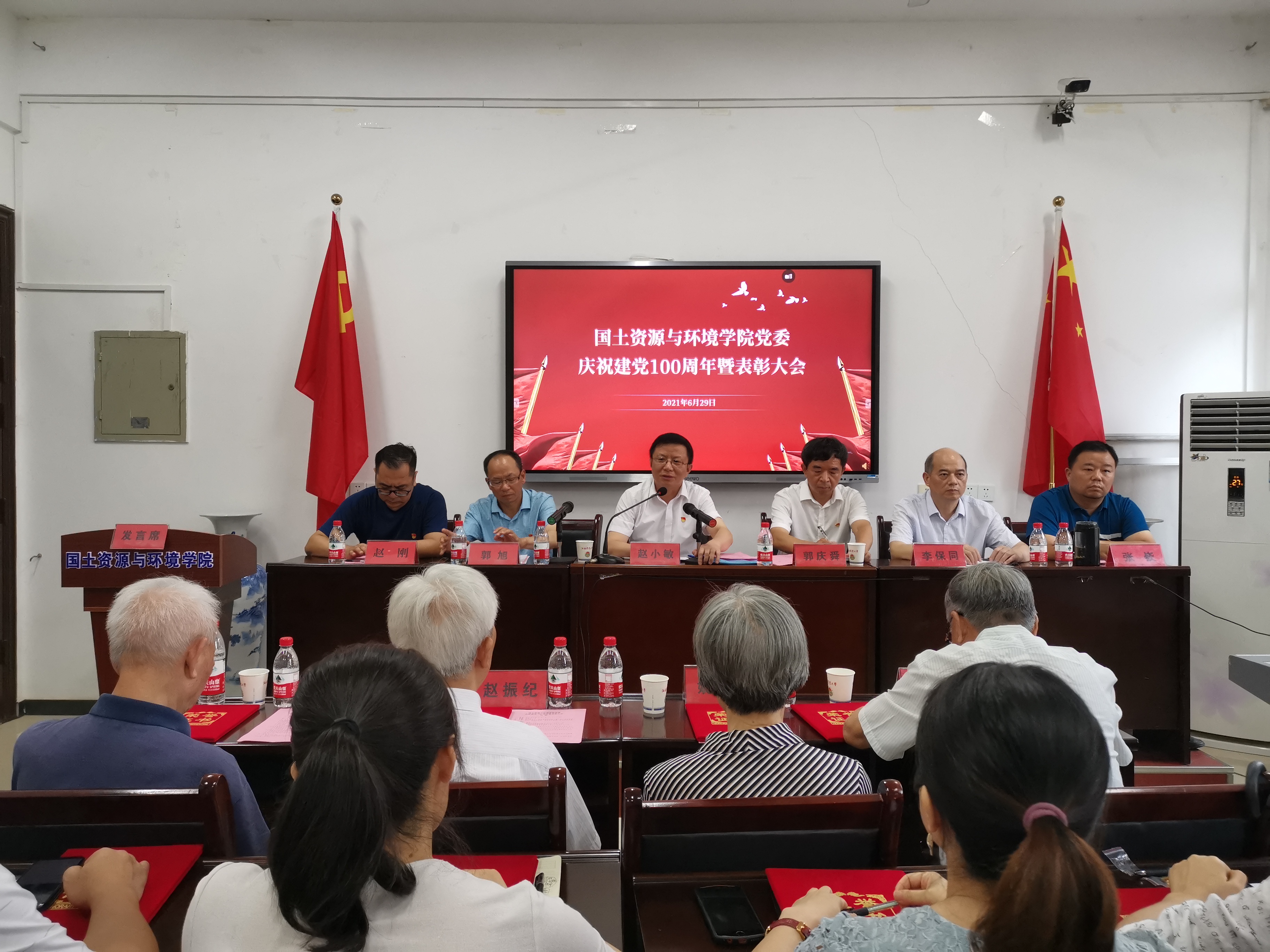 为喜迎建党100周年,弘扬榜样精神,激励担当作为,开创立德树人强农兴农事业新局面。6月29日下午,国土学院党委召开庆祝建党100周年暨表彰大会。校长赵小敏出席会议并讲话,校党委组织部部长郭庆舜、学院领导班子成员、老党员代表、师生党员代表参加。院党委书记郭旭主持会议。