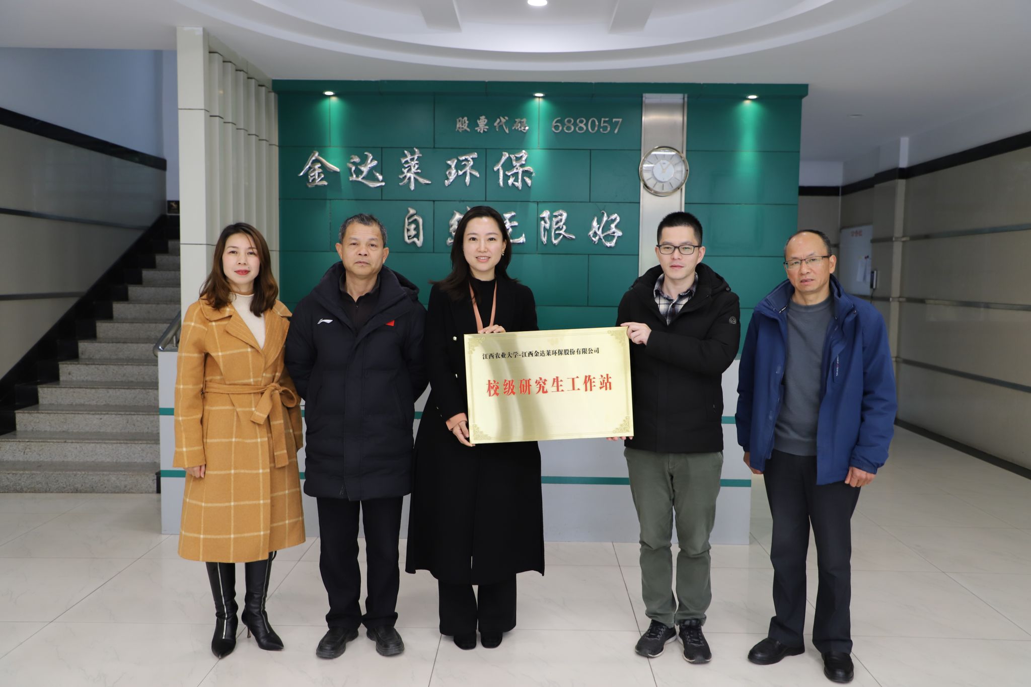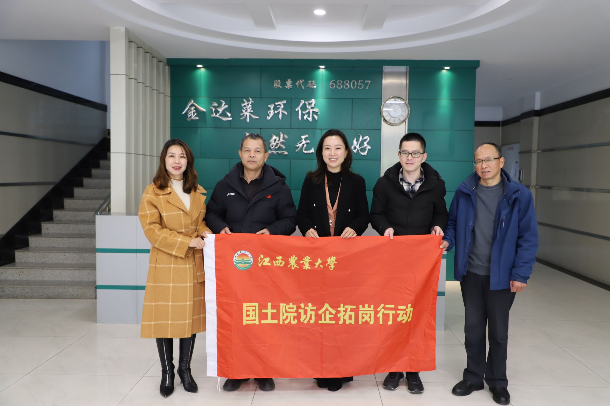 3月5日上午,院党委书记肖明,院长涂文清,院党委副书记马慧琴等一行五人前往校友企业江西金达莱环保股份有限公司开展访企拓岗活动并举行校级研究生工作站挂牌仪式。外国语学院党委书记郭旭应邀一同前往。