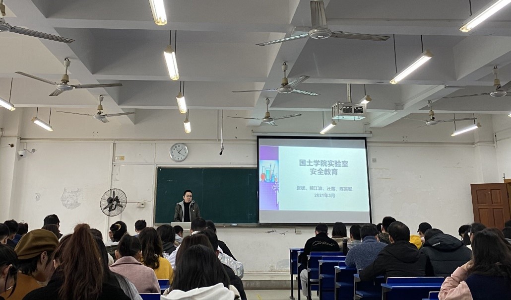 为了进一步提高我院研究生安全意识,国土学院于2021年3月23日下午4点在5教208举办实验室安全知识宣讲会。学院分管教学的张嵚副院长作为主讲嘉宾进行宣讲,会场到场人员有2019级和2020级全体硕士研究生以及在校博士研究生。在会议开始之前,张嵚副院长强调了高校危险化学品安全管理工作的重要意义,要求我们强化责任意识,消除安全隐患,防范安全事故的发生。