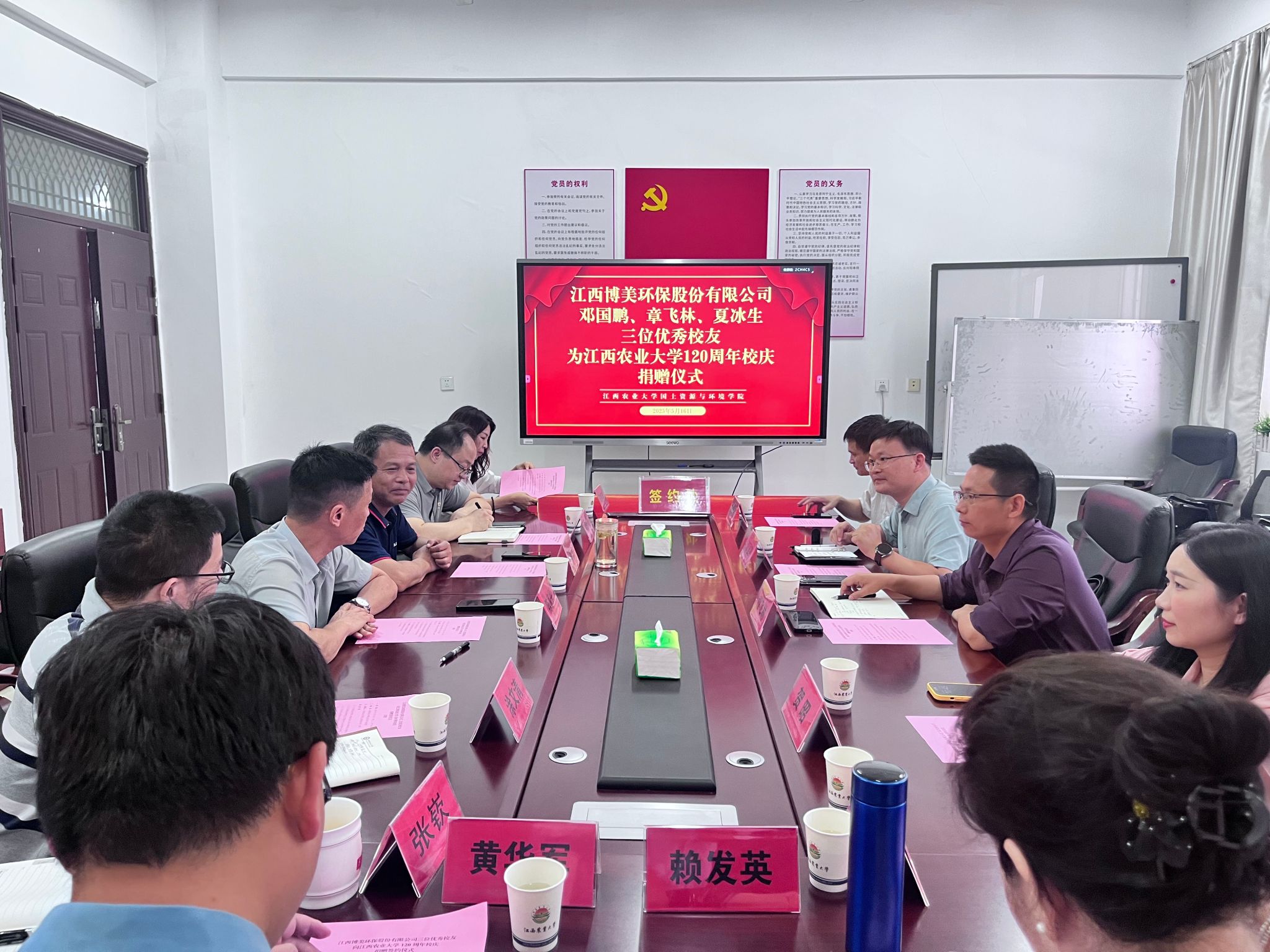5月16日上午,江西博美环保股份有限公司(以下简称博美公司)向江西农业大学建校120周年捐赠仪式在学院举行。博美公司董事长邓国鹏、副总经理章飞林、办公室主任贺昭,学校学生工作部(处)部(处)长陈家兴、校友工作服务中心主任黄新志,全体院领导及教师代表参加捐赠仪式。仪式由学院党委书记肖明主持。