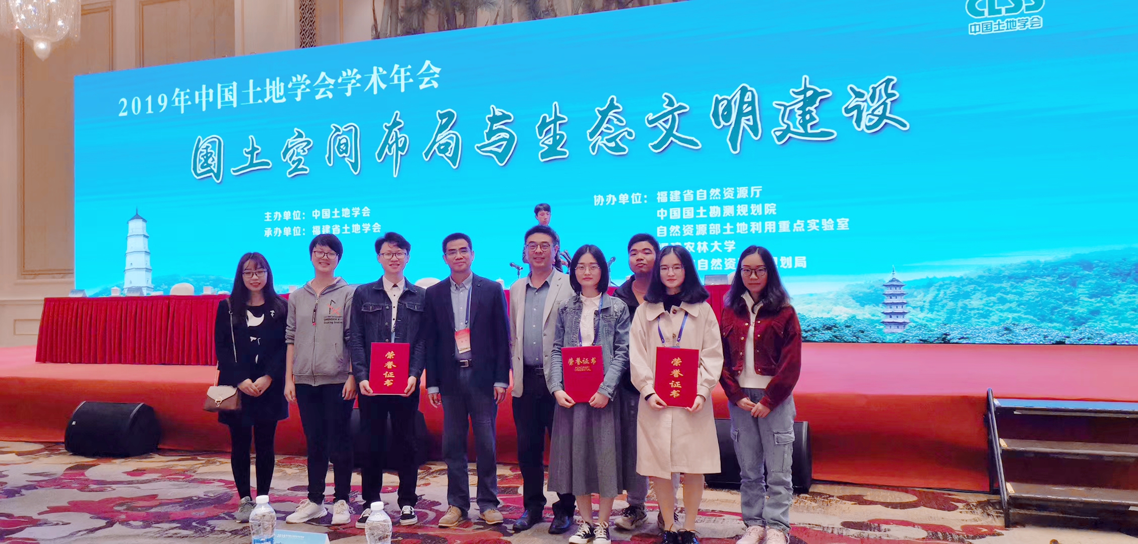 日前,中国土地学会学术年会在福建省福州市举行。本次年会以“国土空间布局与生态文明建设”为主题,紧紧围绕党中央、国务院提出的建立国土空间规划体系的目标和要求,紧扣国土空间布局中的热点难点问题,深入研讨,广泛交流。本次年会邀请了6位业内专家作大会学术报告,并设立了16个分会场,分别围绕大会主题进行学术交流,我校陈美球教授和郭熙教授带领6名研究生参加了此次会议。在中国土地学术年会2019年征文工作中,共有158篇学术论文入选2019年中国土地学会学术年会论文集,我校有10篇论文入选。其中我校2017级土地资源管理专业硕士研究生易丹(指导老师赵小敏教授)荣获一等奖,2017级土地资源管理专业硕士研究生黄心怡(指导老师赵小敏教授)和2018级土地资源管理专业硕士研究生赖昭豪(指导老师陈美球教授)获二等奖。