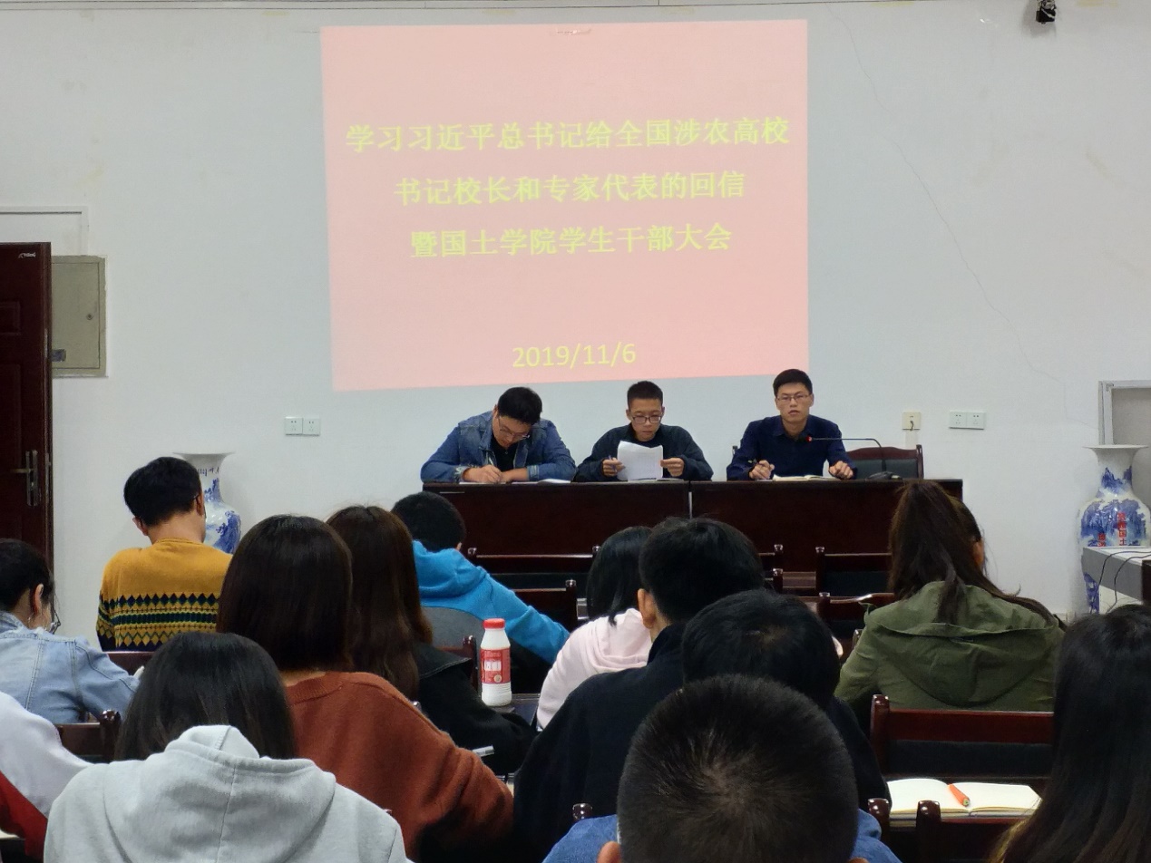 会上,向老师向大家转述了习近平总书记对全国涉农高校书记校长和专家代表大会的回信。接着向老师对一年一度评优评先工作做出了详细的解释以及评选准则,并对我院展开国家体测调研人数不达标、部分学生私自搬离寝室以及我院学生随意请假的问题做出严厉批评和警告。最后,向老师向学生干部们介绍了医疗报销的程序、特别强调了关于创新创业学分问题,并要求各位班长书记多多注意班级里同学的身心变化,出现问题应及时上报学院老师。
