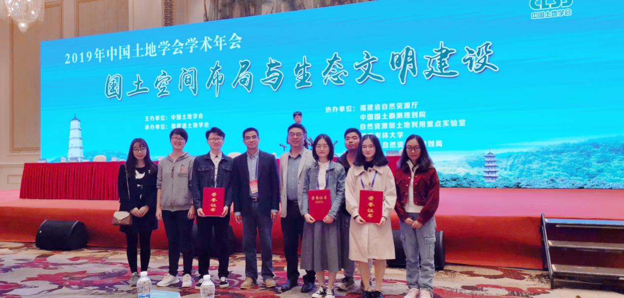 本次年会邀请了6位业内专家作大会学术报告,并设立了16个分会场,分别围绕大会主题进行学术交流,我校陈美球教授和郭熙教授带领6名研究生参加了此次会议。本次会议开展并完成2019年中国土地学术年会征文工作,共158篇学术论文入选2019年中国土地学会学术年会论文集,我校共有10篇论文入选。在此基础上进一步遴选出了10篇优秀论文,我校2017级土地资源管理专业硕士研究生易丹荣获一等奖,2017级土地资源管理专业硕士研究生黄心怡、2018级土地资源管理专业硕士研究生赖昭豪分别荣获二等奖。