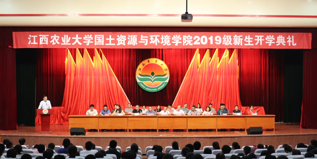 10月9日晚7点,我院在校逸夫馆报告厅举行2019级新生开学典礼。副校长刘木华、院长李保同、院党委副书记赵刚、江西省鄱阳湖流域农业资源与生态重点实验室副主任郭熙、团委(学工办)、教学办、行政办、各教研室主任、2019级新生班班主任、新生班辅导员和全体434名新生参加典礼。院党委书记郭旭主持开学典礼。