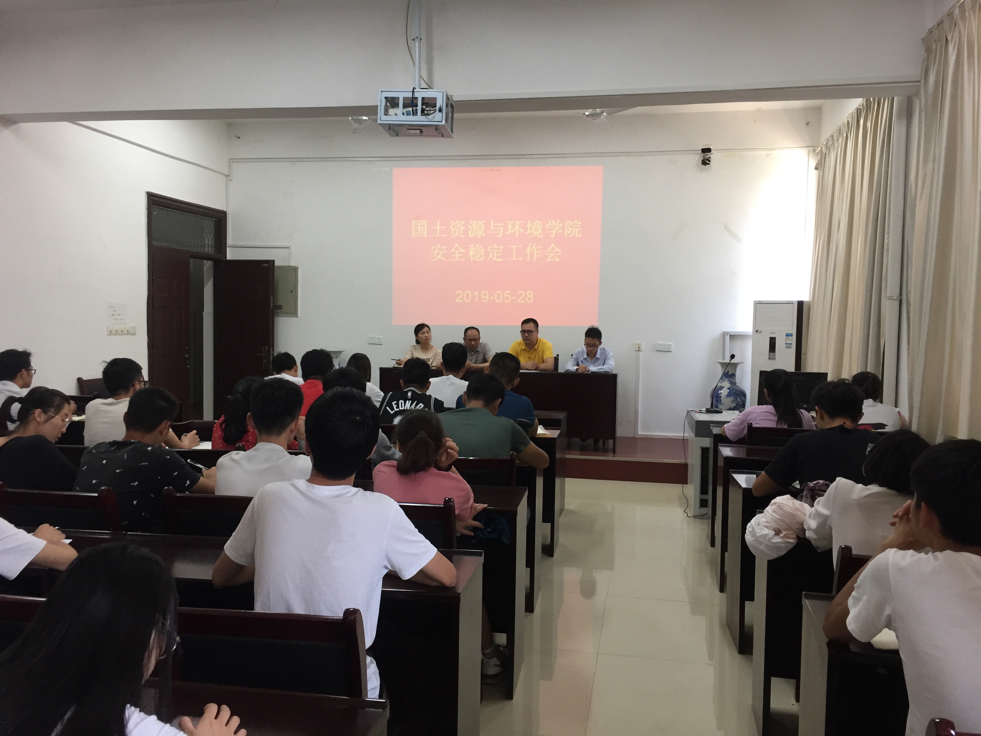 为加强我院学生安全教育管理工作,根据江西省教育厅《关于切实加强校园安全管理的紧急通知》文件精神。我院于5月28日召开国土资源与环境学院安全稳定工作会。院党委书记郭旭、党委副书记赵刚,院团委学工办老师及全院主要学生干部参加会议。