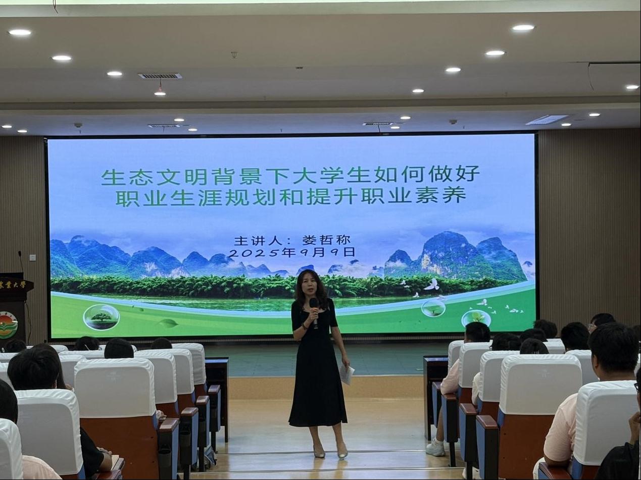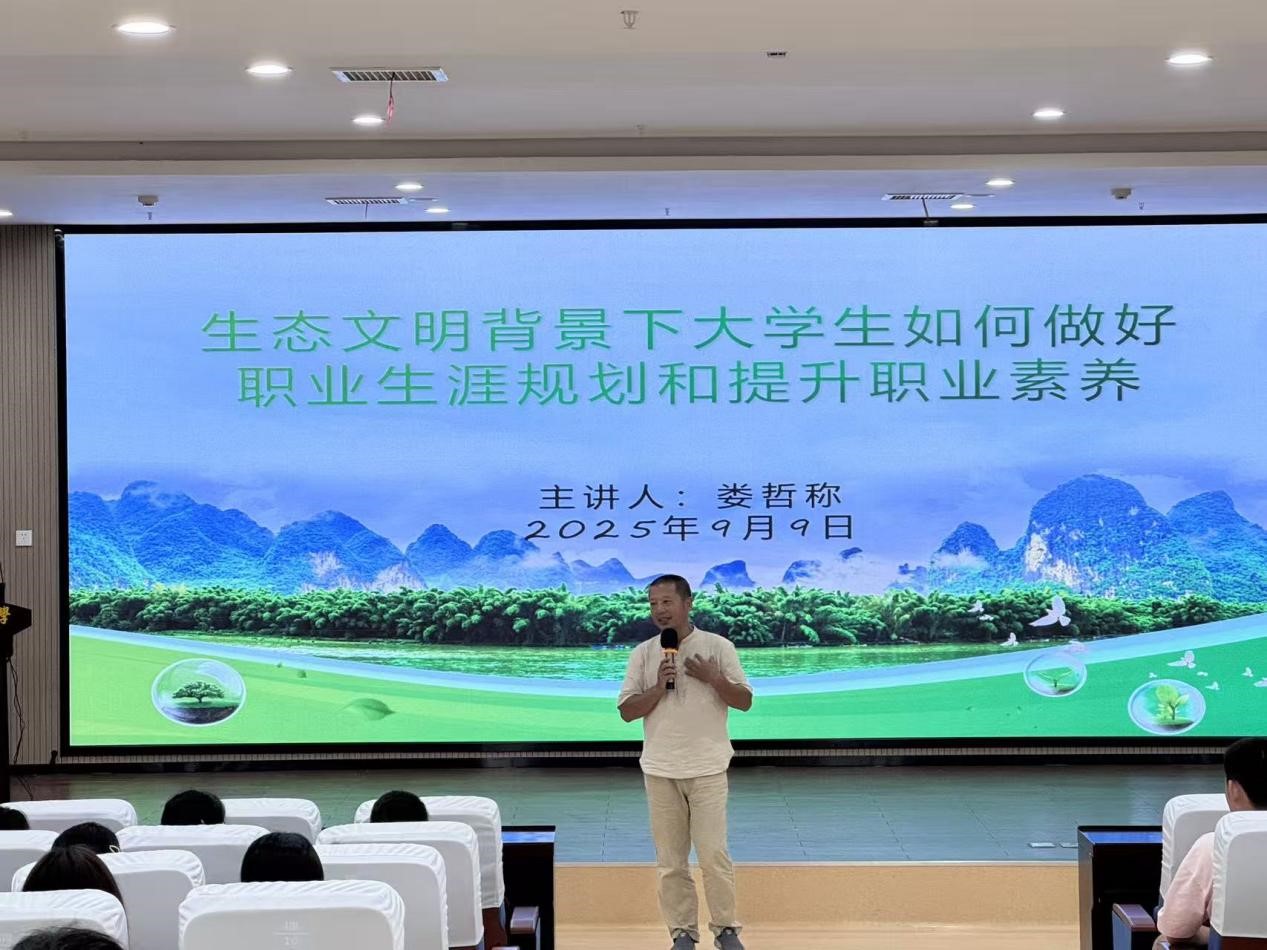 9月9日下午,国土学院举办“生态文明背景下大学生职业生涯规划与职业素养提升”专题讲座。活动邀请农耕文化学者娄哲称先生,以“绿色生涯,规划先行”为核心,为2025级新生送上一堂思想启蒙课。学院党委副书记马慧琴老师出席并主持本次讲座。