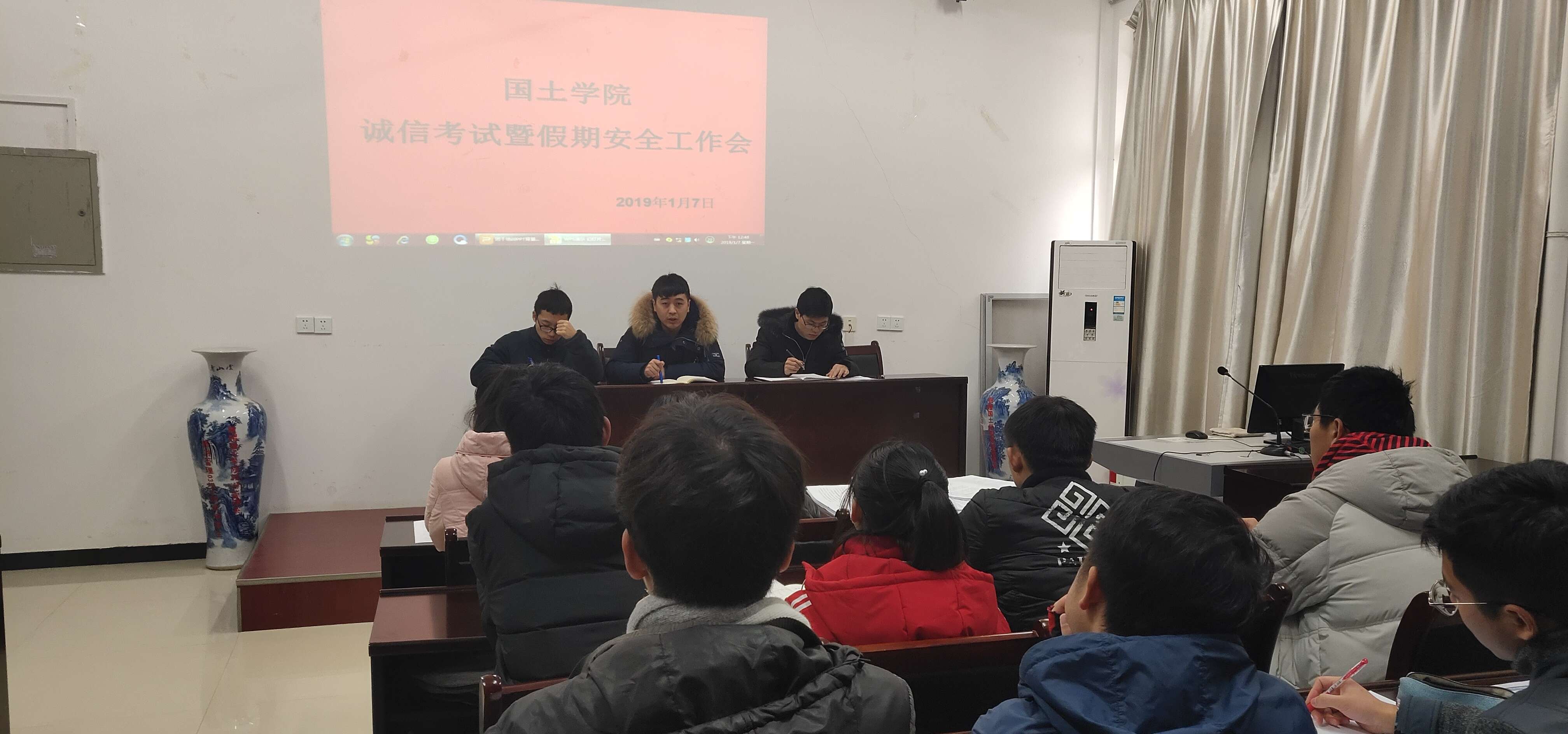 1月7日,我院组织全体学生干部召开诚信考试暨假期安全工作会。