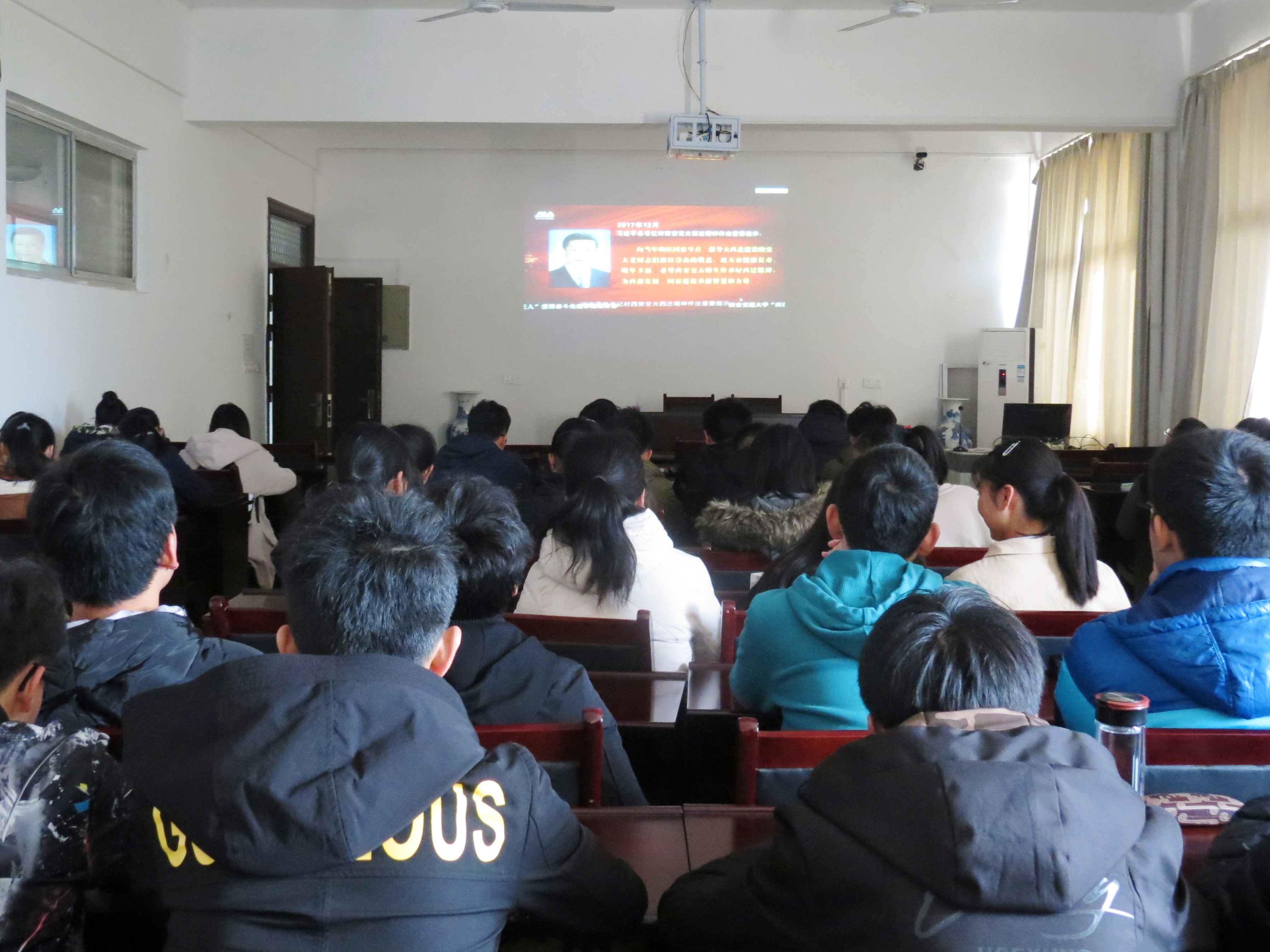 为深入贯彻落实习近平总书记对弘扬爱国奋斗精神作出的重要指示,进一步推动“弘扬爱国奋斗精神、建功立业新时代”活动,11月22日上午9:00,我院领导班子成员,各教研室、办公室教师与学生代表们在院办大会议室共同收看了“西迁人”爱国奋斗先进事迹报告会现场直播。