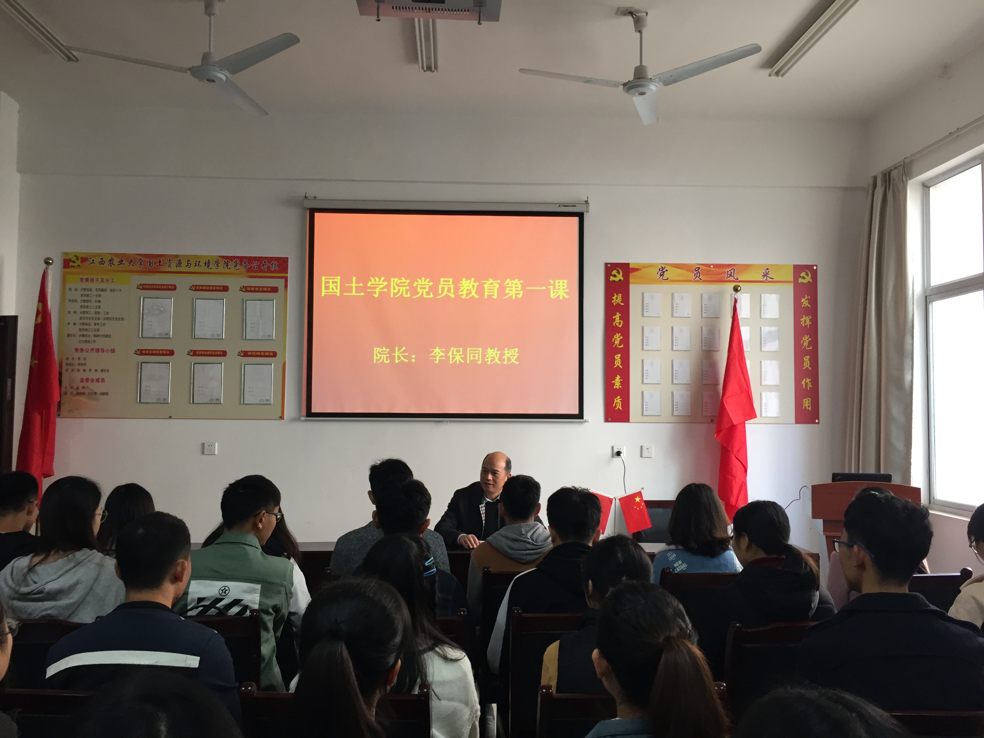 11月27日,国土资源与环境学院开展院领导上思想政治理论课活动,院长李保同教授为新一批预备党员授课。