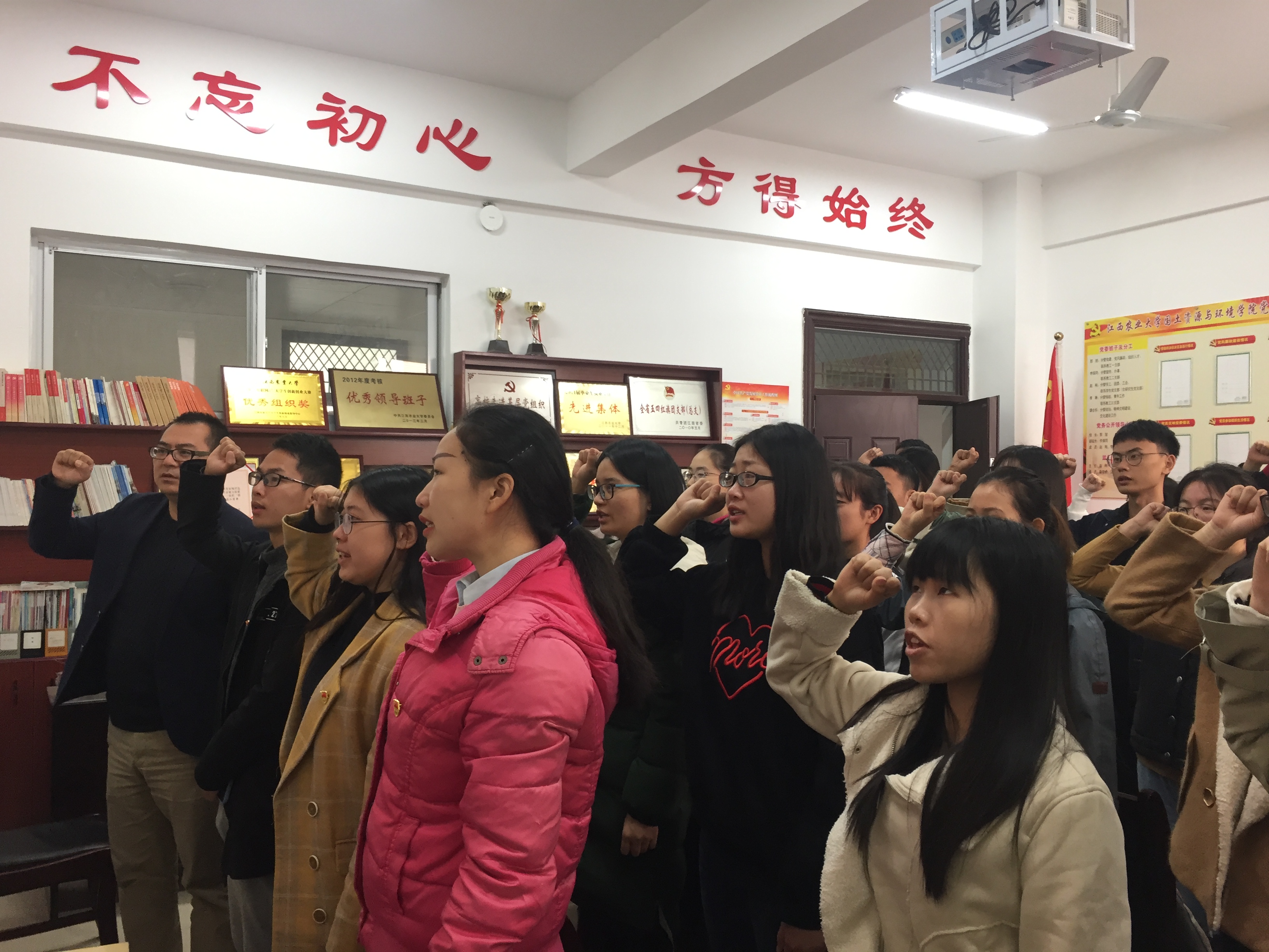 授课结束后,院党委副书记赵刚带领新一批的预备党员宣誓。并对新一批党员提出两点希望,一是努力学习,争做优秀党员。二是希望各位党员积极配合学院工作,不折不扣的完成党组织交办的任务。