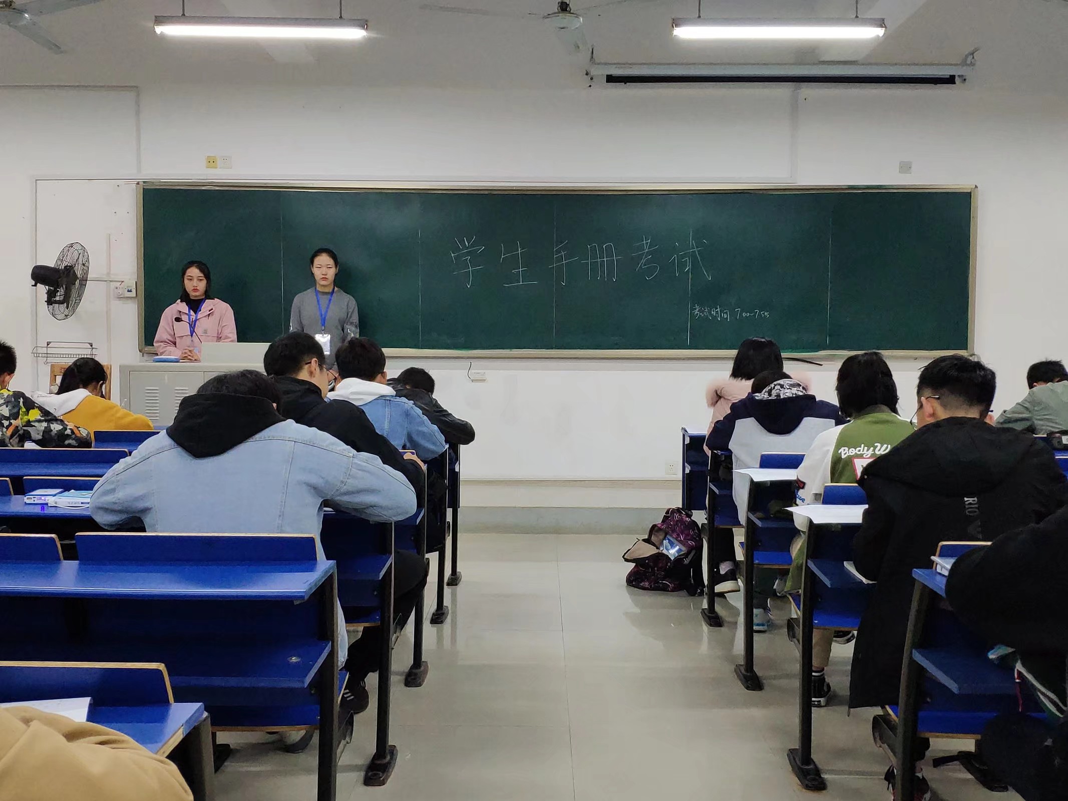 本次考试采用闭卷考试的形式,主要考察我校学生管理规定和学籍管理办法的相关内容。考试过程中同学们认真思考,注重考风考纪,考试结束后学院将组织学生干部批阅试卷,并将考试成绩作为综合素质测评中思想道德栏目的重要参考依据。