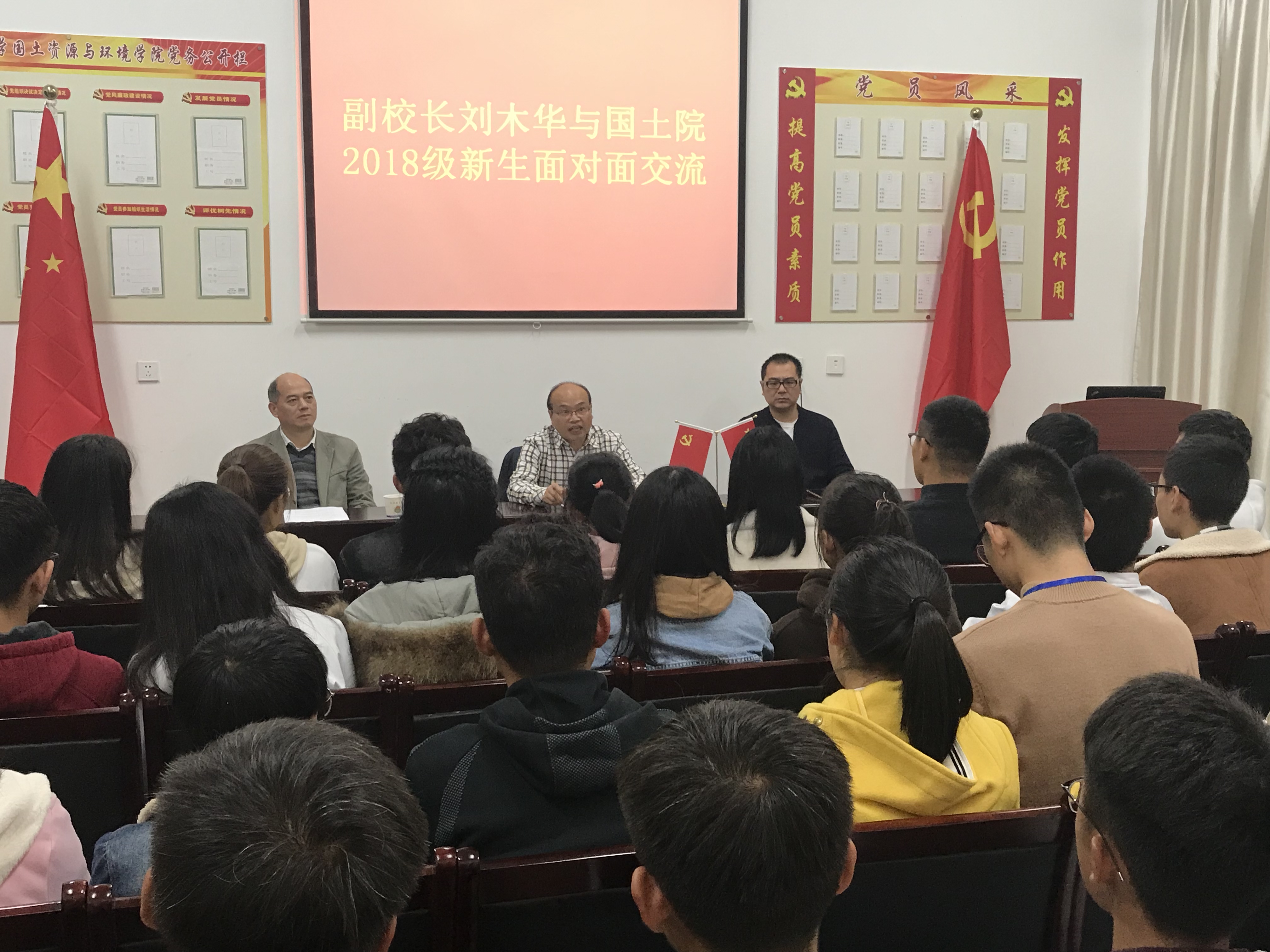 11月14日下午,国土学院开展校长与新生“面对面”交流会活动。江西农业大学副校长刘木华应邀参加,我院院长李保同、党委副书记赵刚及2018级新生代表参加活动。