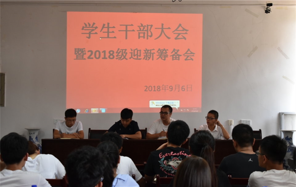 9月6日中午,国土学院在院办大会议室召开学生干部大会暨2018级迎新筹备会,出席本次会议的有:院党委副书记赵刚、学工办谢嗣荣老师、学工办向文武老师、学工办张勇老师、第二十二届团委学生会全体委员以及2018级各新生班级辅导员。